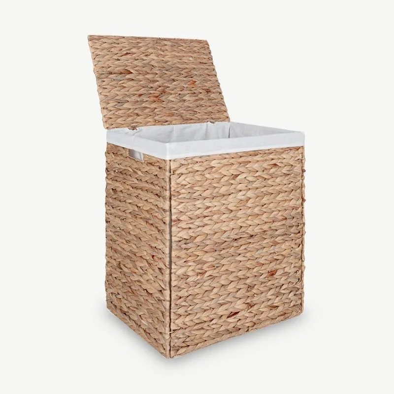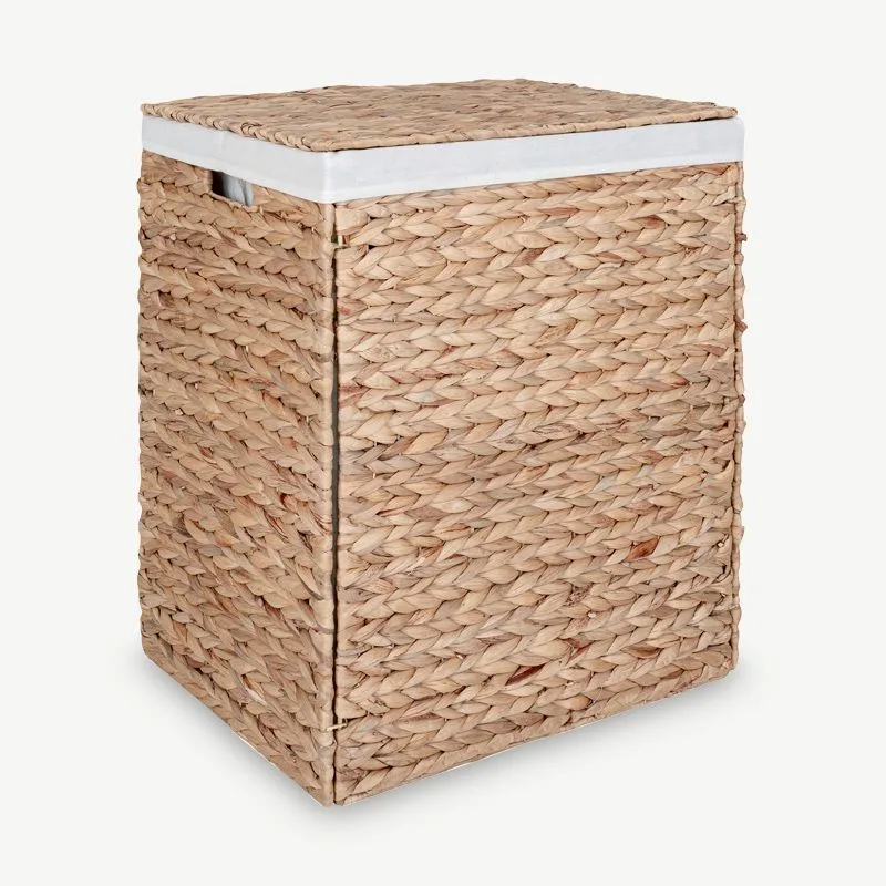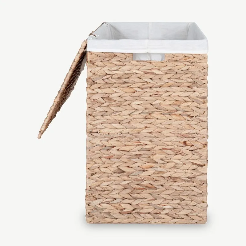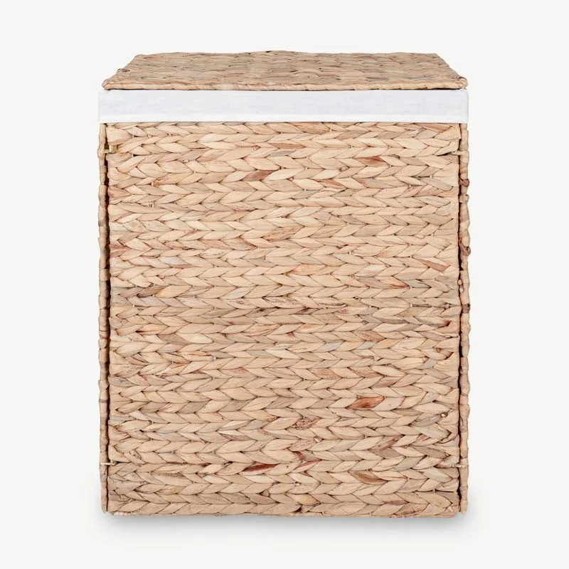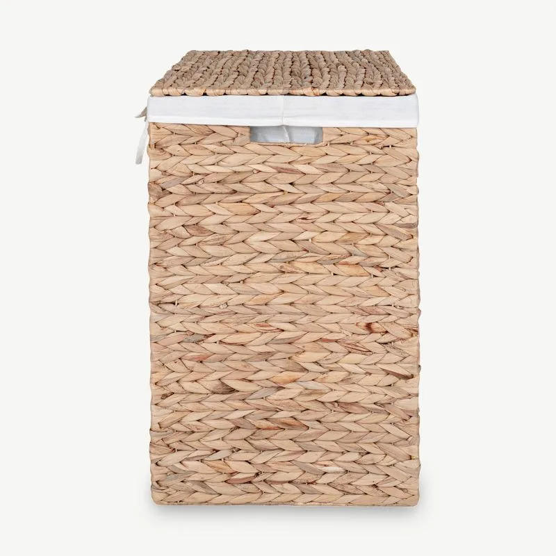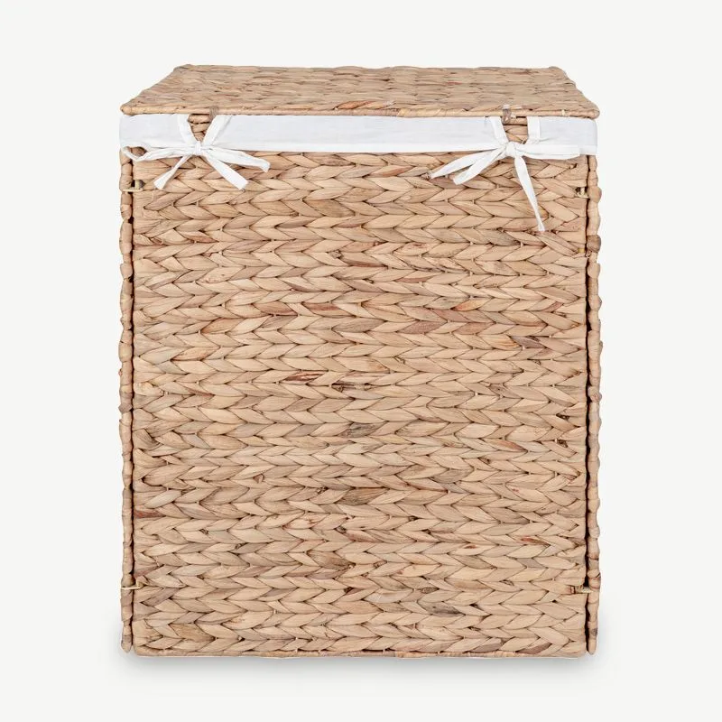 See kaunilt punutud pesukorv on valmistatud vesihüatsindist, mis on tuntud oma vastupidavuse ja keskkonnasõbralikkuse poolest. Tugev struktuur tagab, et korv peab vastu ka igapäevasele kasutusele, säilitades samal ajal oma elegantse välimuse.