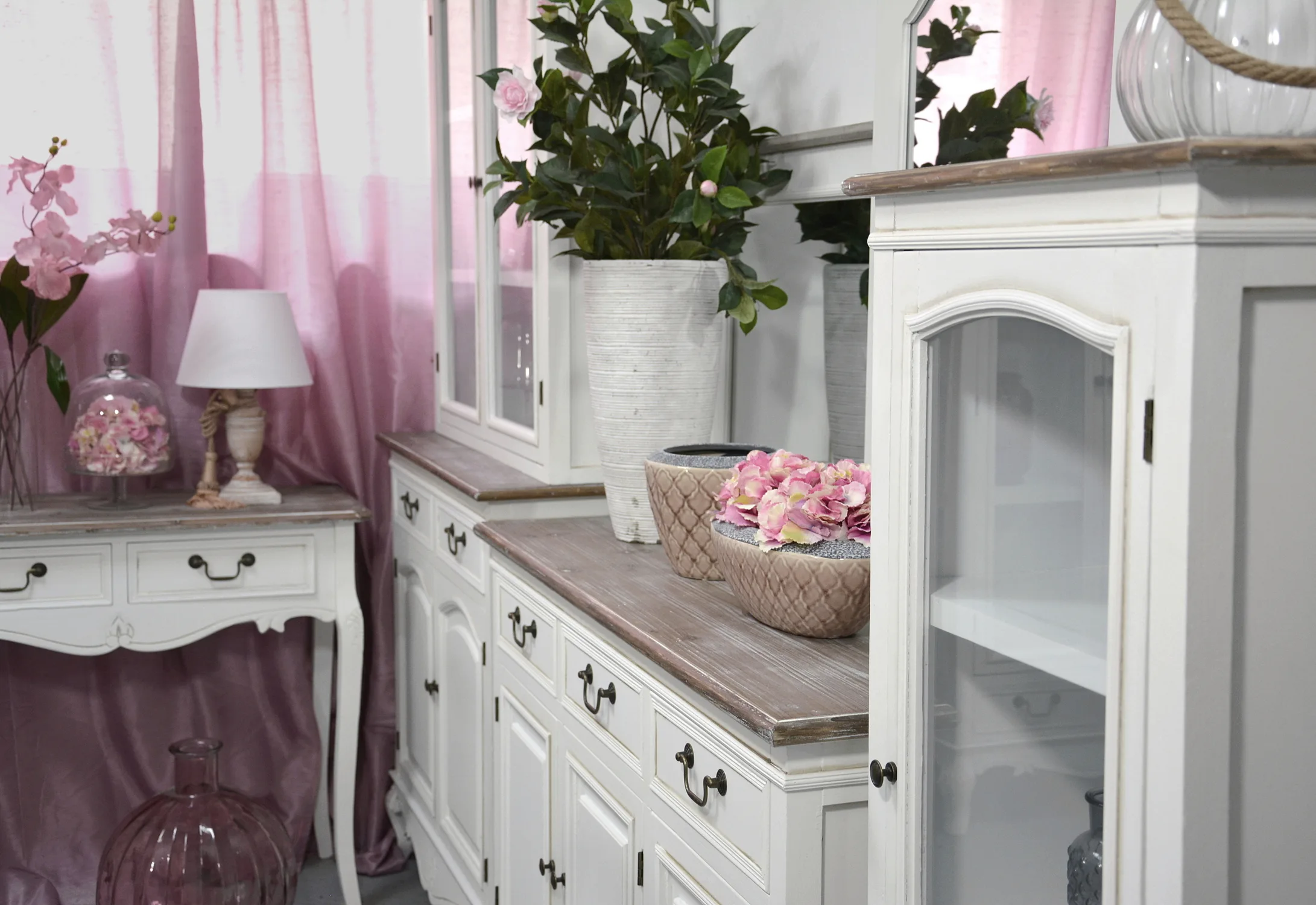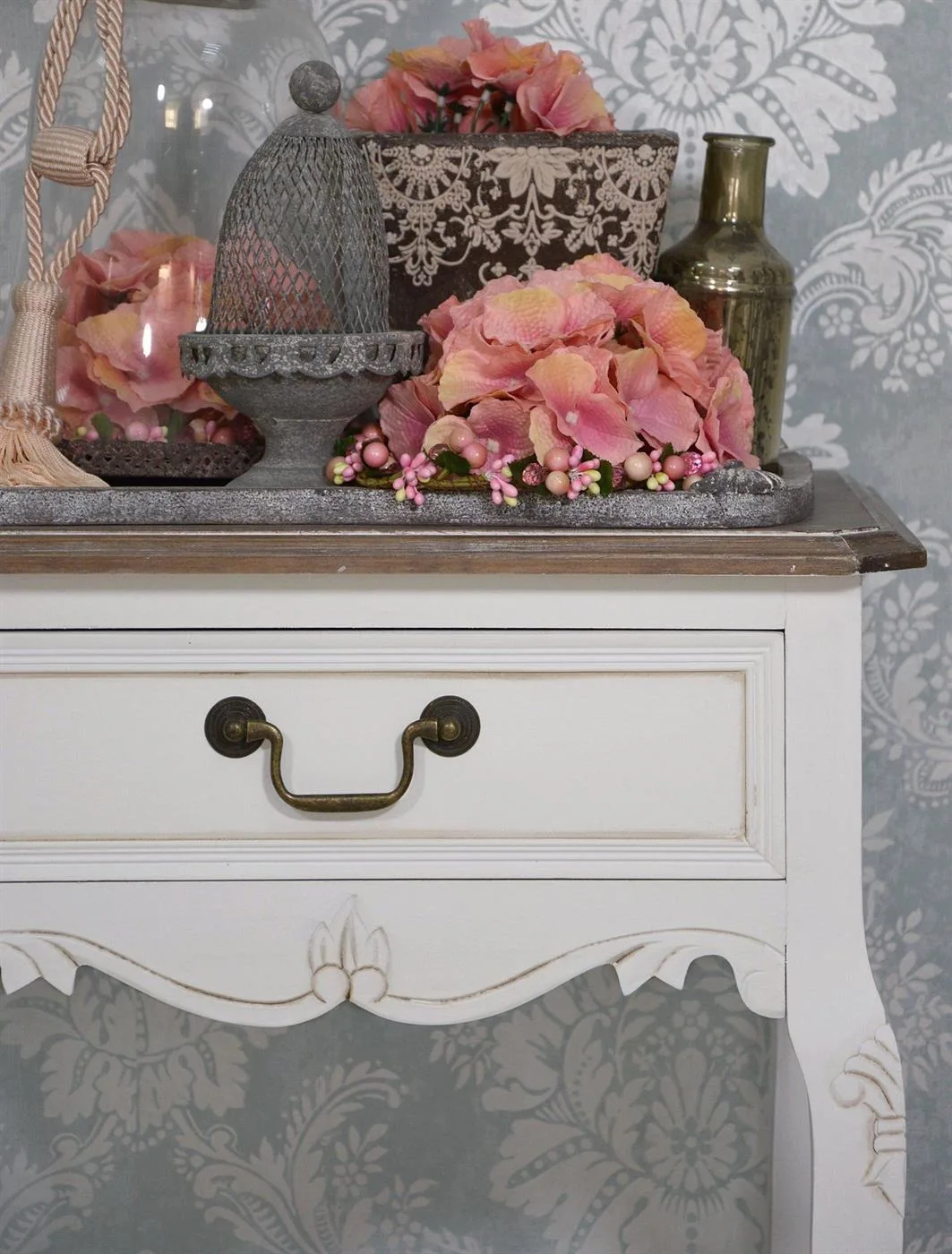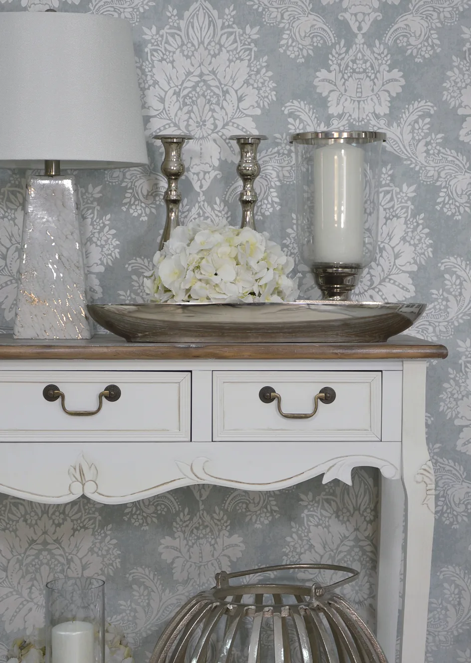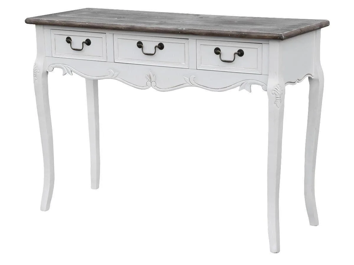 Rimini White RIW017 konsoollaud esikusse. See elegantne Provencal stiilis konsoollaud lisab teie esikusse klassikalist võlu, ühendades valged nikerdused ja tumedama pruuni tööpinna. Metallist käepidemed ja kaardus jalad annavad sellele mööbliesemele ainulaadse iseloomu.