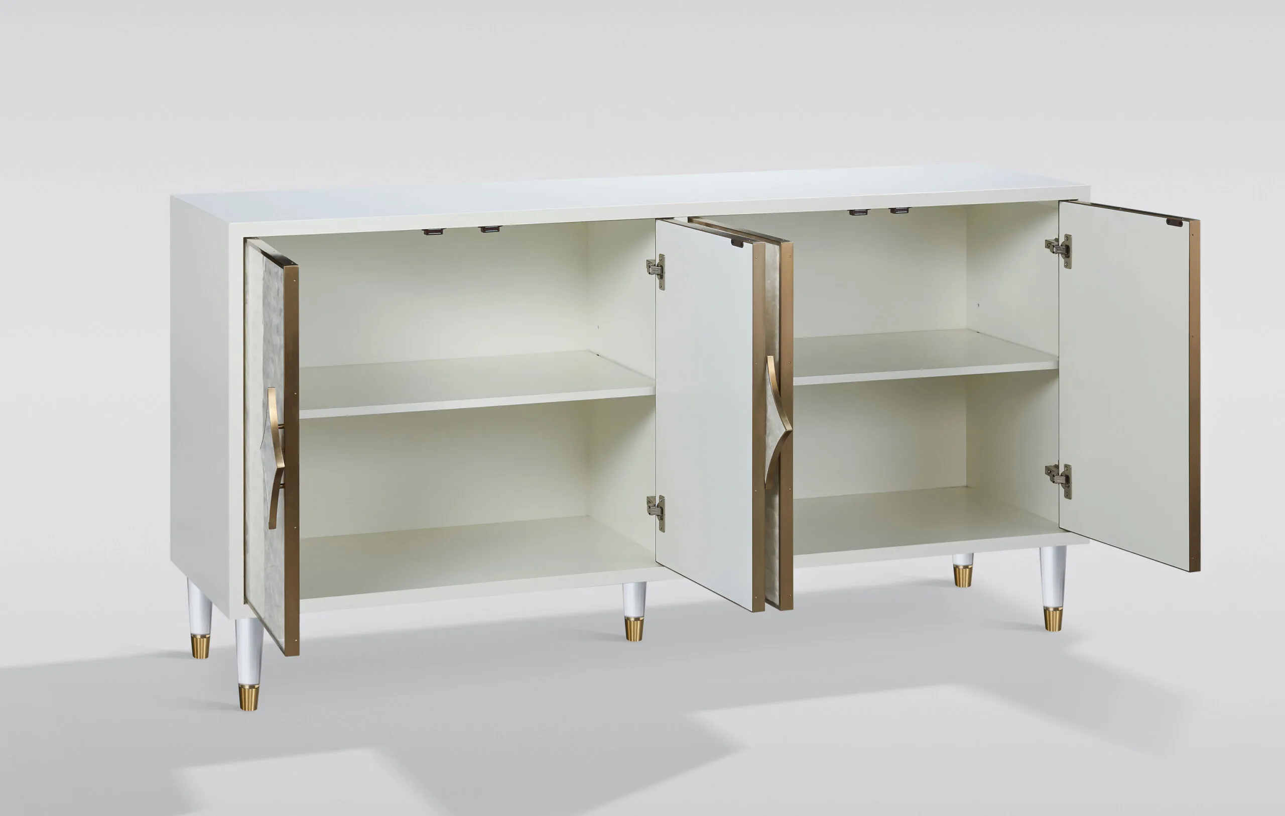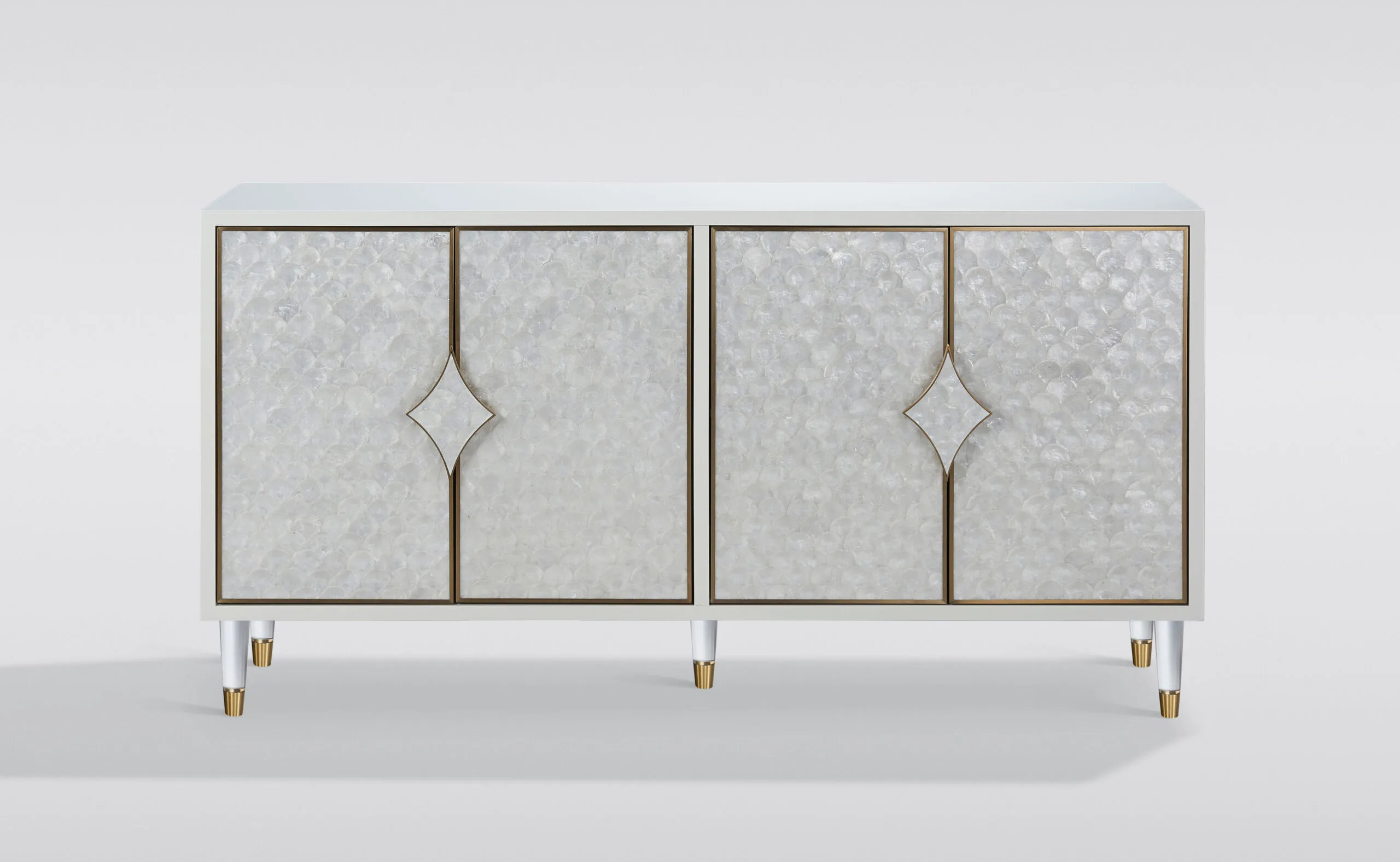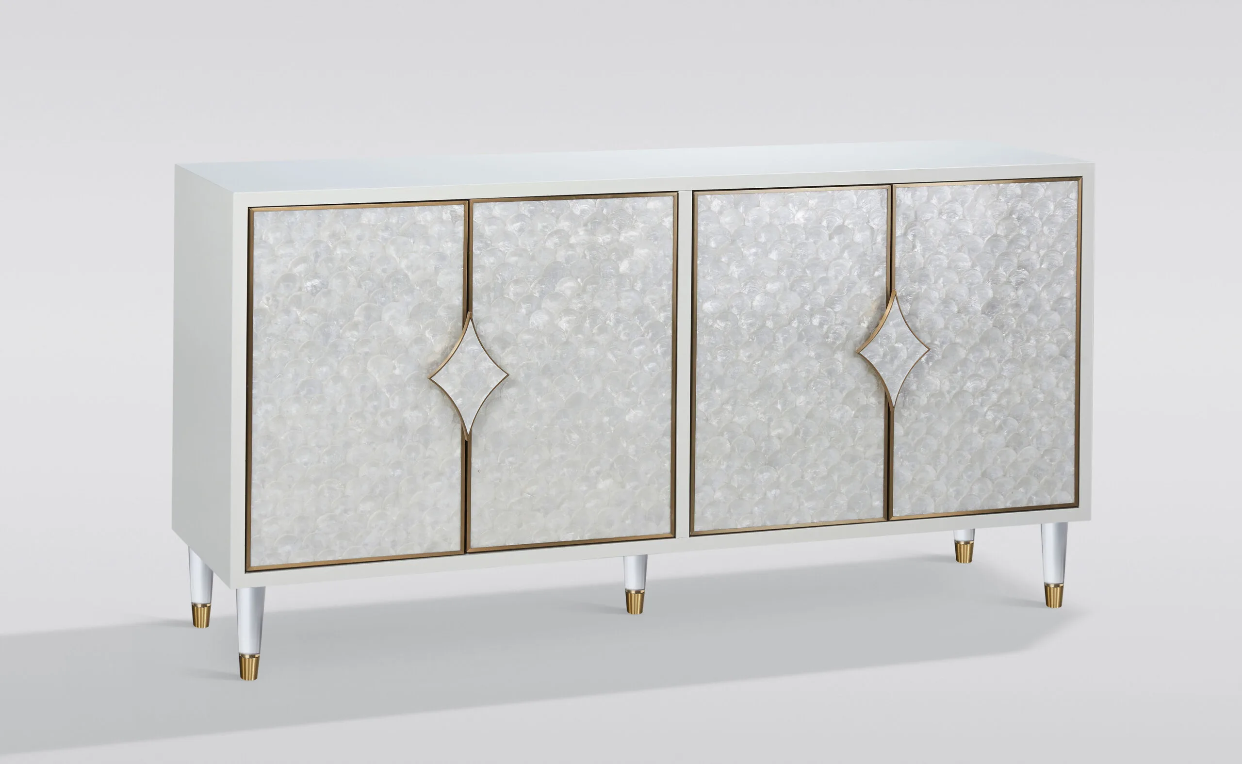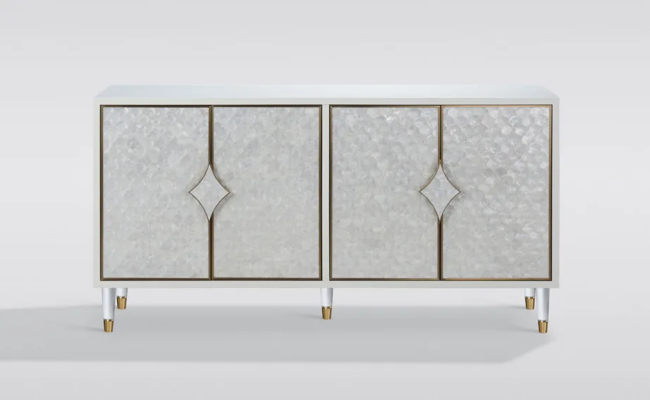 Stilig ST200 kummut elutuppa. See elegantne kummut on osa Stilig kollektsioonist ning lisab teie elutuppa unikaalse ja stiilse elemendi. Kummuti esikülg on kaetud naturaalse merekarbiga, mis meenutab kalasoomuseid, luues visuaalselt põneva efekti. Ukse kuldsed triibud ja massiivsed teemantkujulised käepidemed täiendavad kogu disaini, lisades sellele luksuslikku hõngu. Kuldse aktsendiga valged jalad annavad kummutile kaasaegse ja rafineeritud ilme.
