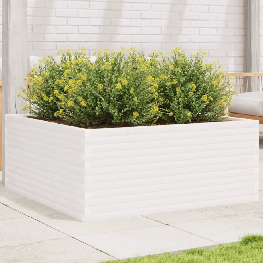 See valge männipuidust aia taimekast pakub praktilise ja esteetilise lahenduse lillede, ürtide ja juurviljade kasvatamiseks. Ruumikas istutusala mahutab palju mulda ning avatud põhi aitab hoida taimede juured hästi kuivendatud ja hingavana, luues soodsad kasvutingimused väiksemal pinnal.