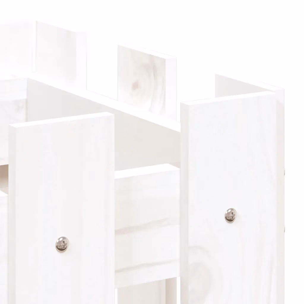 See valge männipuidust kõrgendatud taimelava on praktiline lahendus lillede ja maitsetaimede kasvatamiseks aias või rõdul. Ruumikas kast hoiab mulda ja taimi ühes kohas koos ning aiapiirde stiilis disain lisab istutusalale korrastatud ja dekoratiivse ilme.