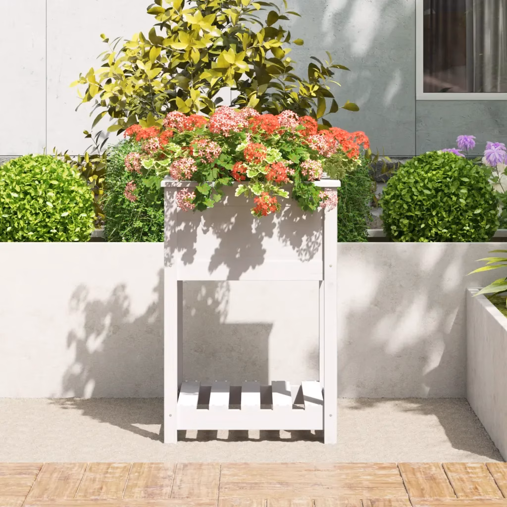 See valge männipuidust riiuliga taimekast võimaldab istutada köögivilju, maitsetaimi ja lilli mugaval ergonoomilisel kõrgusel, kaitstes põlvi ja selga. Sügav istutuskast ja lisariiul pakuvad ruumi taimedele ja taimetarvikutele elutoas, rõdul või verandale.