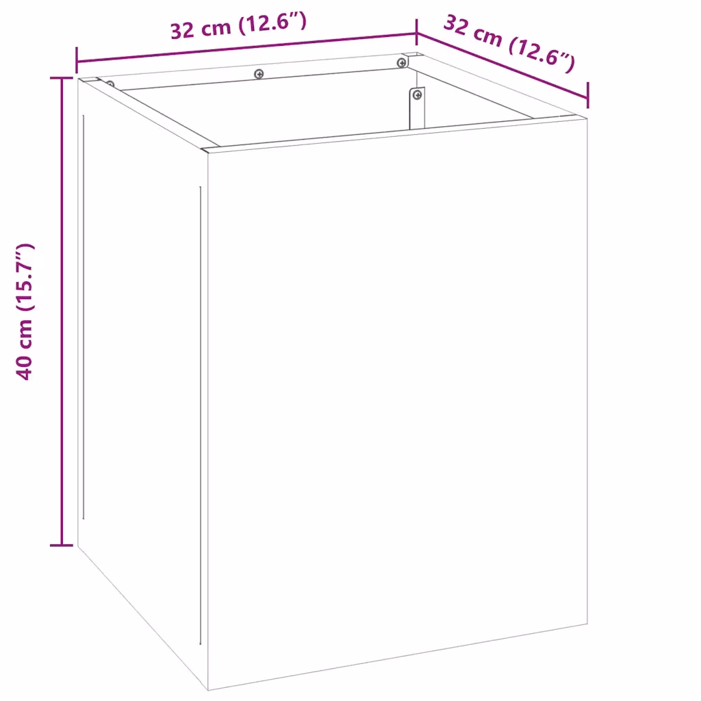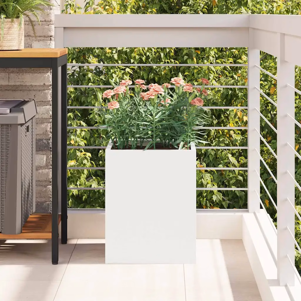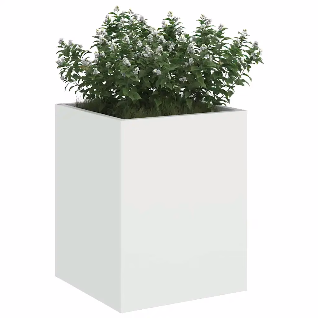 • 1 valge külmvaltsitud terasest aia istutuspott mõõtudega 32 x 32 x 40 cm (laius x sügavus x kõrgus)