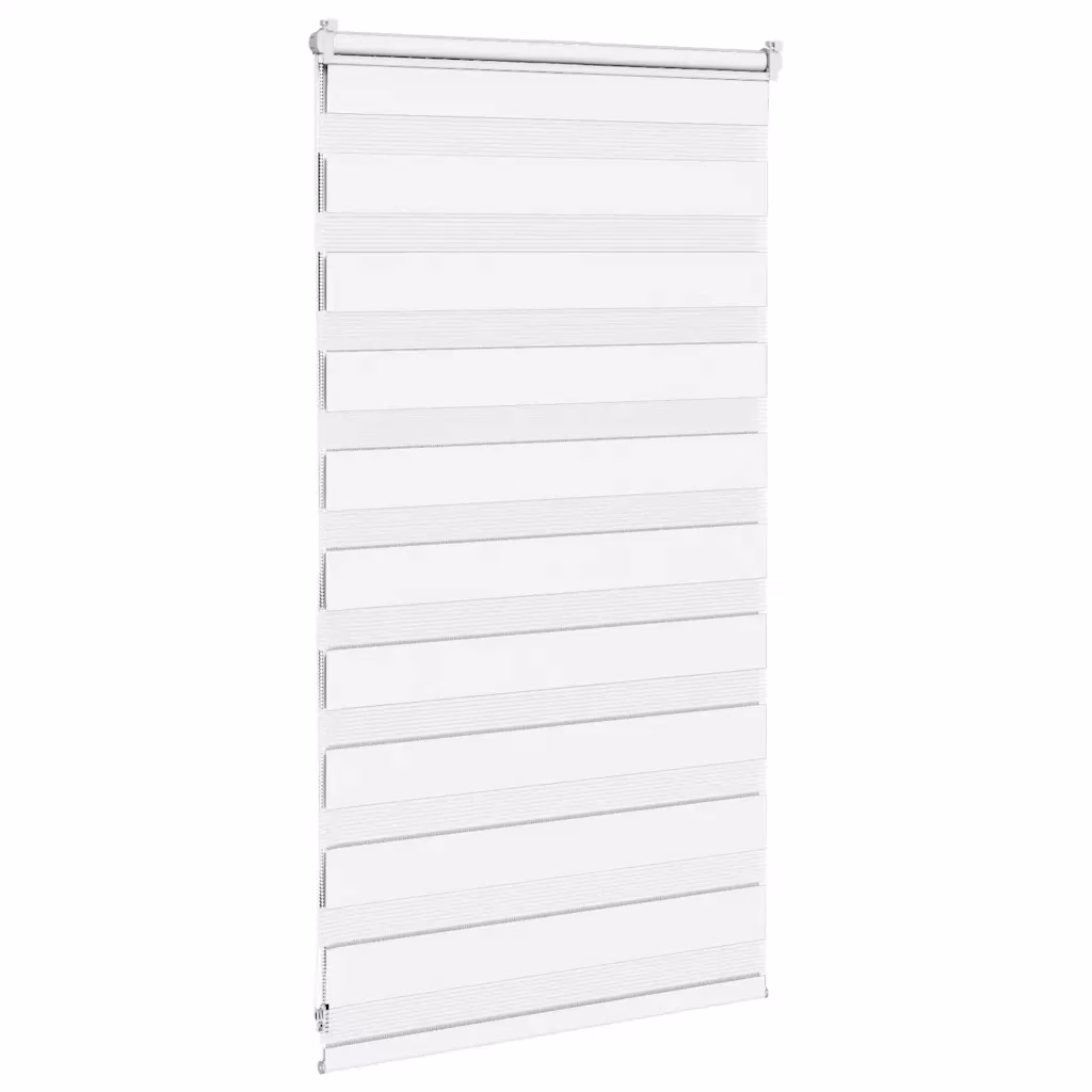 See valge päev-öö ruloo sebramustriga ühendab stiili ja funktsionaalsuse, võimaldades lihtsa kettmehhanismi abil ruumi valgust ja privaatsust täpselt reguleerida. Kahekihiline kangas vahelduvate läbipaistvate ja läbipaistmatute ribadega sobib hästi elutuppa, magamistuppa või kontorisse, luues puhta ja kaasaegse ilme.