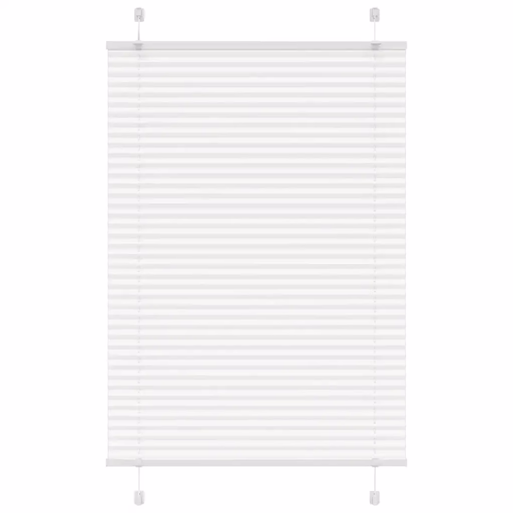 See valge plisseeritud ruloo mõõduga 85 x 150 cm sobib hästi ruumidesse, kus on vaja privaatsust ja samas piisavalt päevavalgust. Volditud polüestrkangas aitab vähendada pimestavat päikesevalgust ning loob ühtlase, tagasihoidliku ilme elutuppa, magamistuppa või kontorisse.