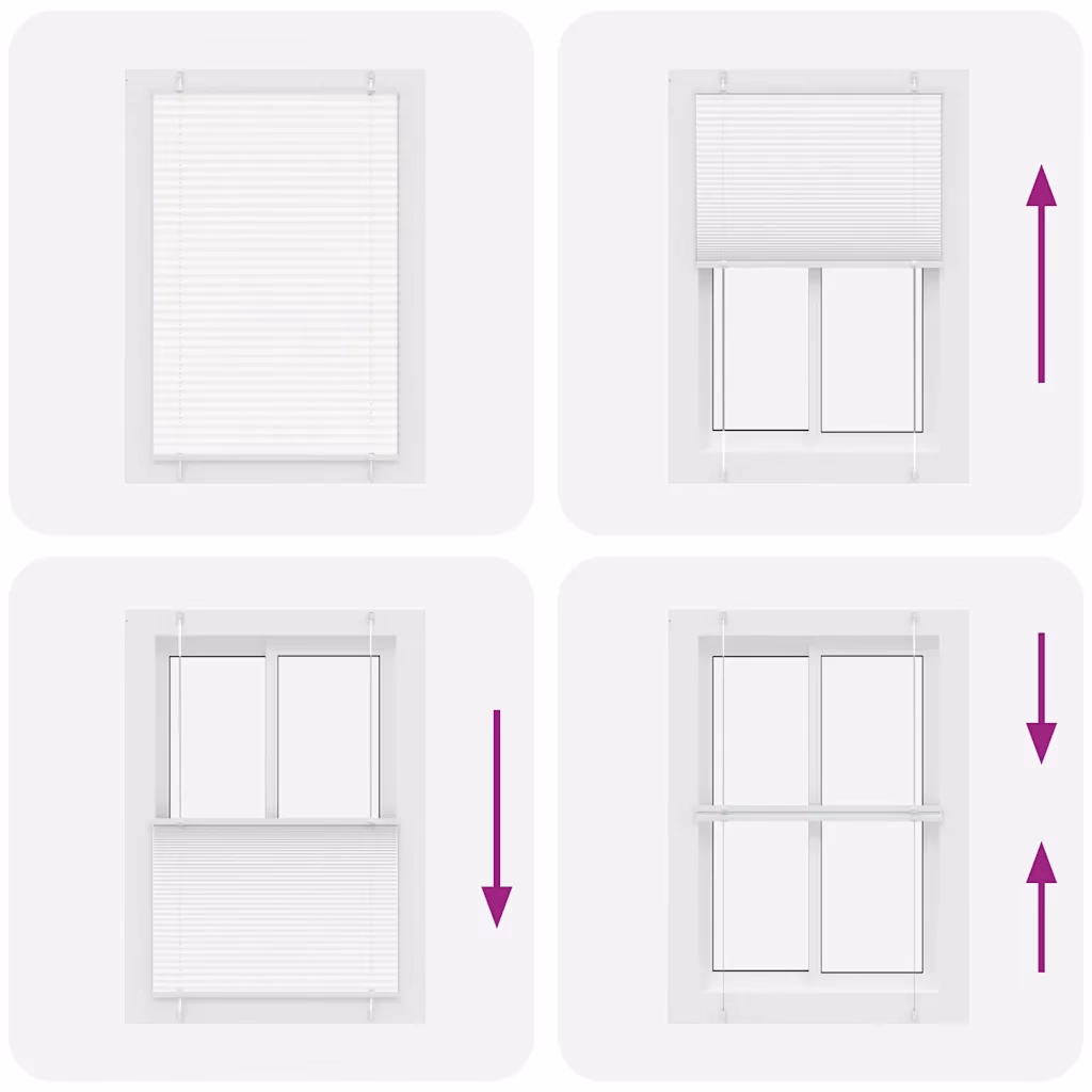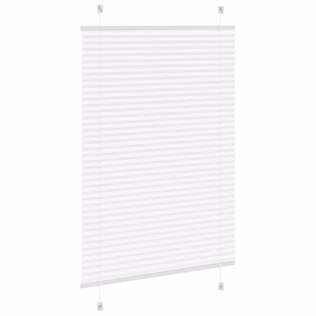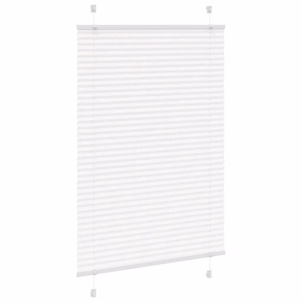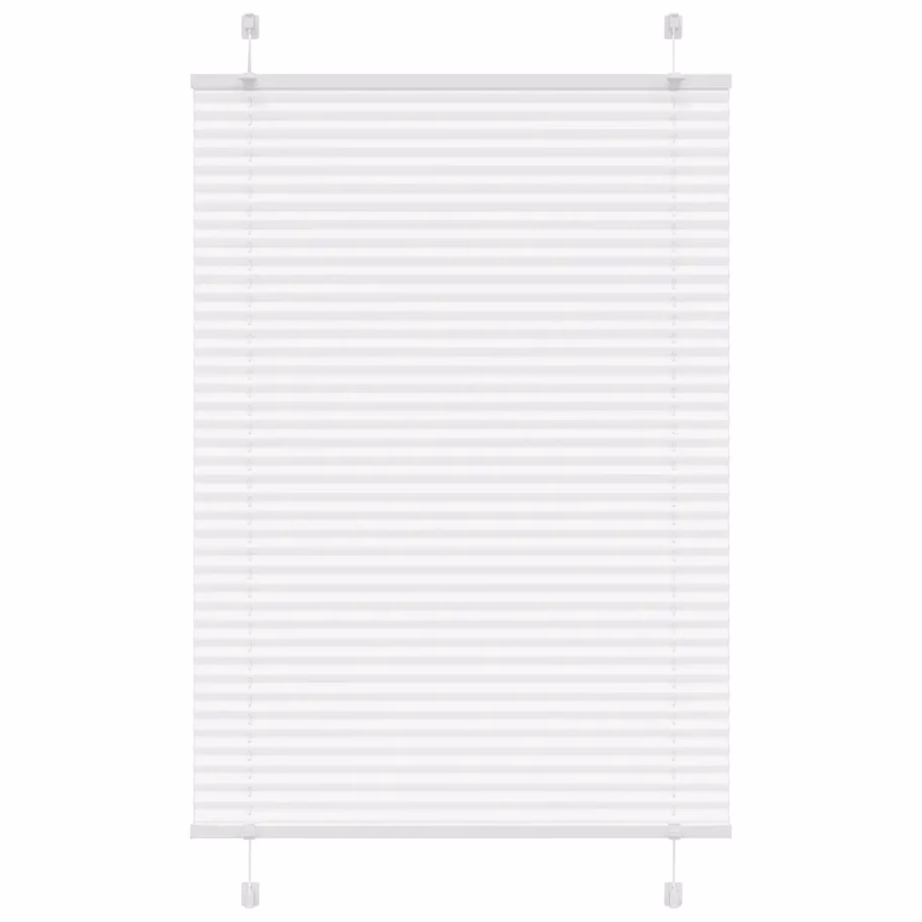 Valgust ja privaatsust tasakaalustav valge plisseeritud ruloo 90 x 150 cm