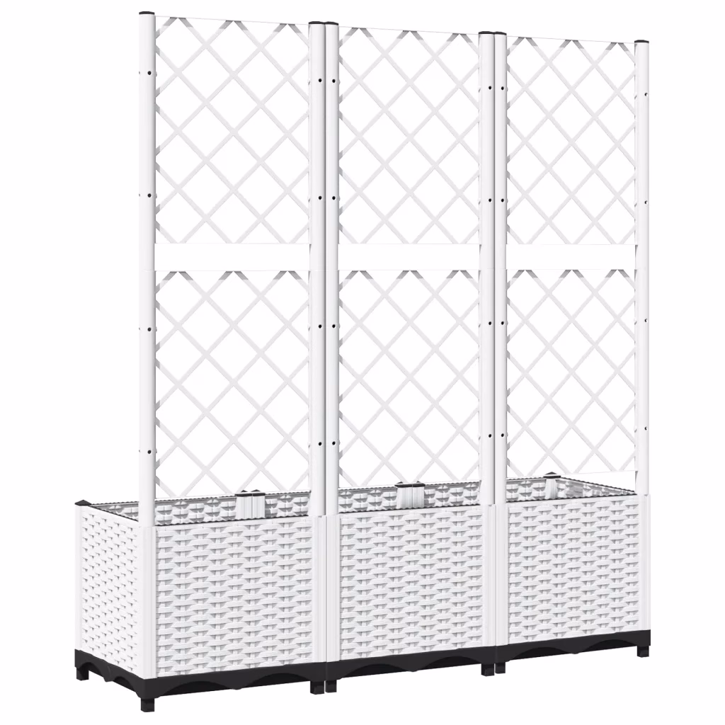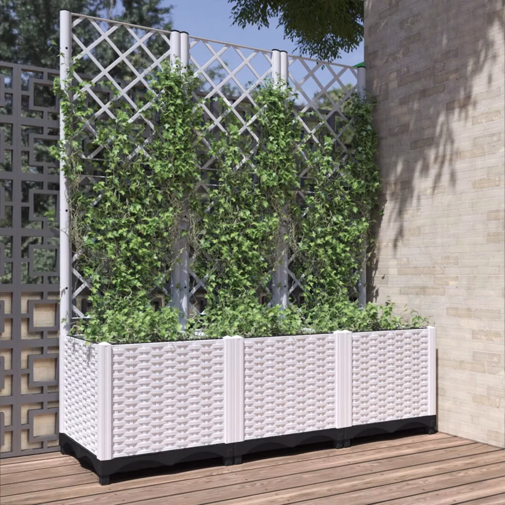 See valge võrega taimekast loob praktilise lahenduse ronitaimede kasvatamiseks, pakkudes neile tuge ja samal ajal lisades rohelust teie aeda, rõdule või terrassile. Ruumikas alumine kast mahutab hulga taimi ja lilli, et saaksite luua lopsaka taimeseina või dekoratiivse rohelise piirde.