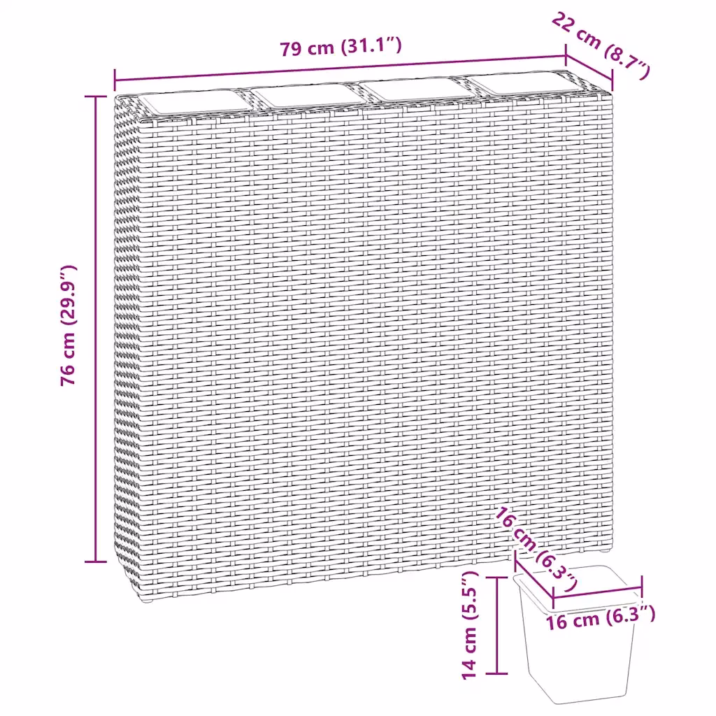 See taimekast ühendab ruumisäästliku kuju ja võimaluse kasvatada korraga mitut taime ühtses stiilses lahenduses. Ilmastikukindel polürotang ja eemaldatavad potid teevad hoolduse lihtsaks ning sobivad hästi nii alustavale kui kogenud taimehuvilisele, kes soovib korrastatud ja nägusat haljastust.