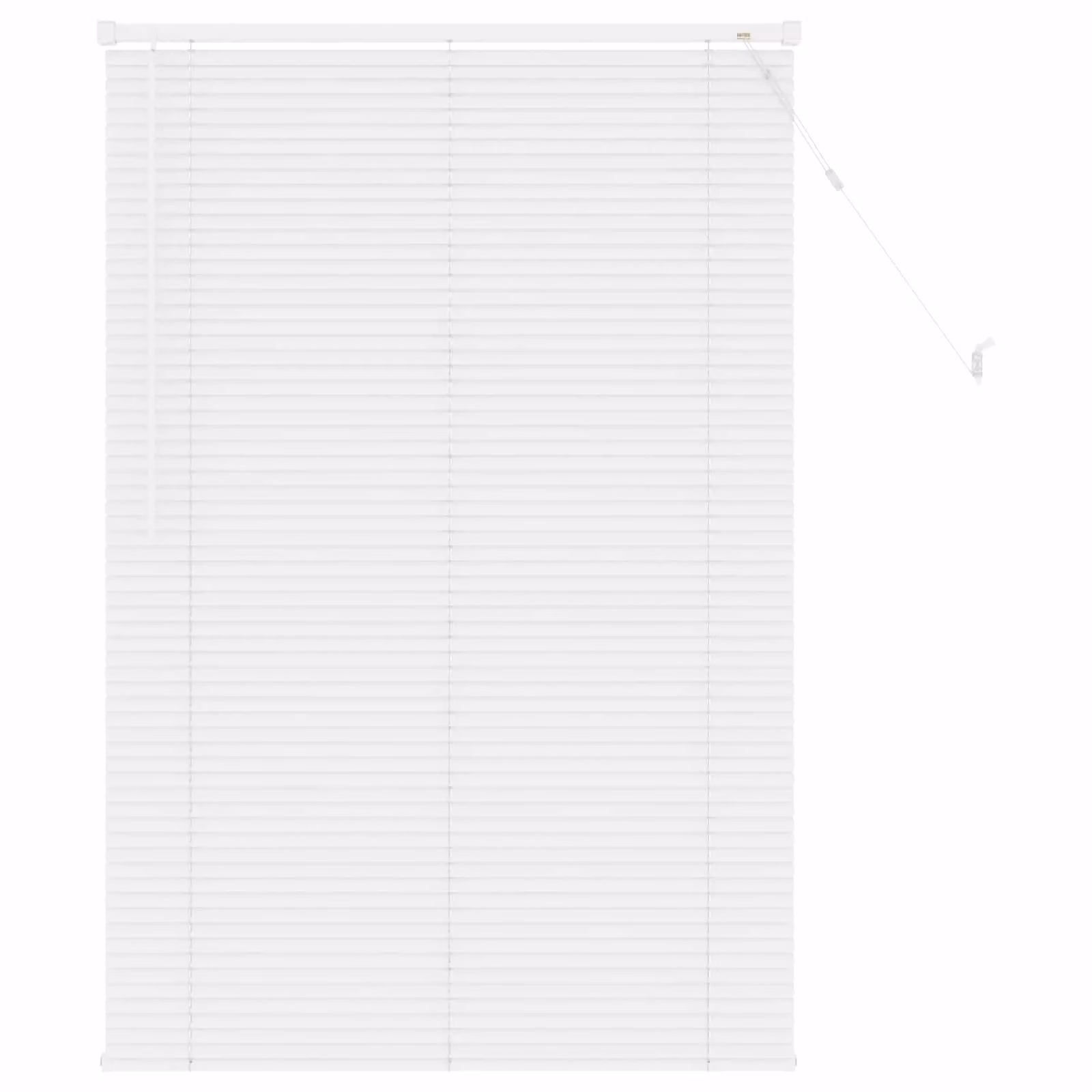 Valge PVC-st valmistatud Veneetsia ruloo mõõtmetega 150 x 90 cm on praktiline aknakate koju ja kontorisse. Reguleeritavad lamellid võimaldavad täpselt juhtida valguse hulka ja privaatsust, säilitades samal ajal hea ventilatsiooni ja modernse ilme.