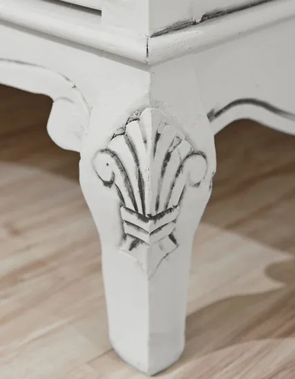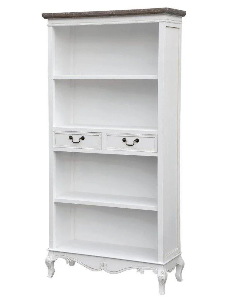 Rimini White RIW02 raamaturiiul kodukontorisse. See elegantne Provencal stiilis raamaturiiul on kaunistatud valgete nikerdustega ning sellel on tumedast pruunist puidust ülemine osa, mis lisab ruumile soojust ja iseloomu. Metallist käepidemed ja kumerad jalad annavad riiulile ainulaadse ja rafineeritud välimuse.