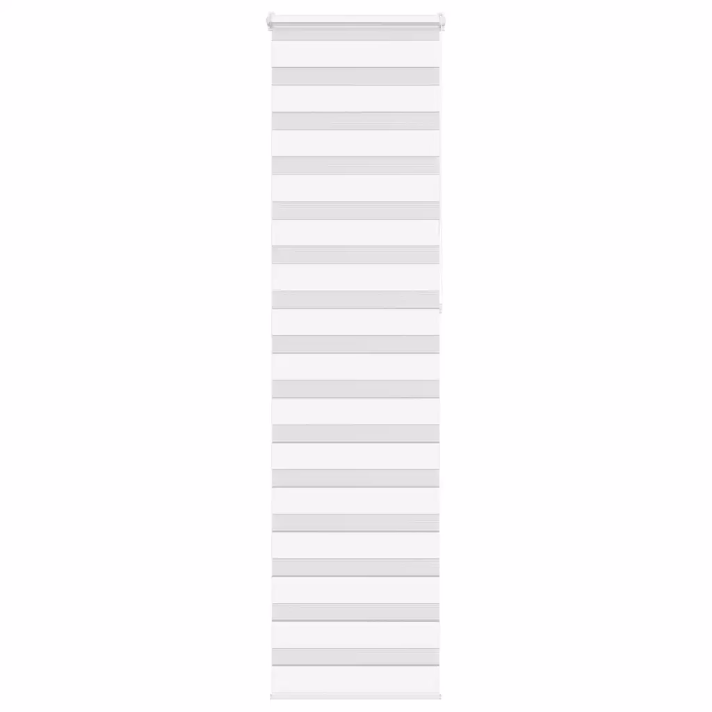 See valge sebra ruloo tüüpi päev ja öö ruloo võimaldab lihtsalt juhtida ruumi valgust ja privaatsust. Kahekihiline triibuline kangas vahelduvate läbipaistvate ja läbipaistmatute ribadega loob ühtlase ilme elutuppa, magamistuppa või kontorisse ning sobib akendele, millele on vaja paindlikku valguse reguleerimist.