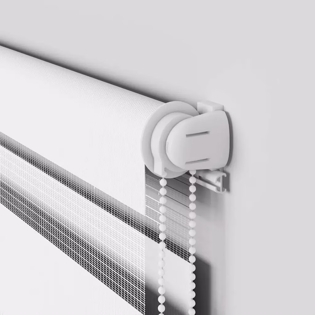 See valge sebraruloo ühendab stiilse triibulise disaini ja praktilise valguse reguleerimise. Kahekihiline kangas vahelduvate läbipaistvate ja läbipaistmatute ribadega võimaldab muuta ruumi kas valgusküllaseks või privaatselt varjatuks, sobides elutuppa, magamistuppa, kabinetti või kontorisse.