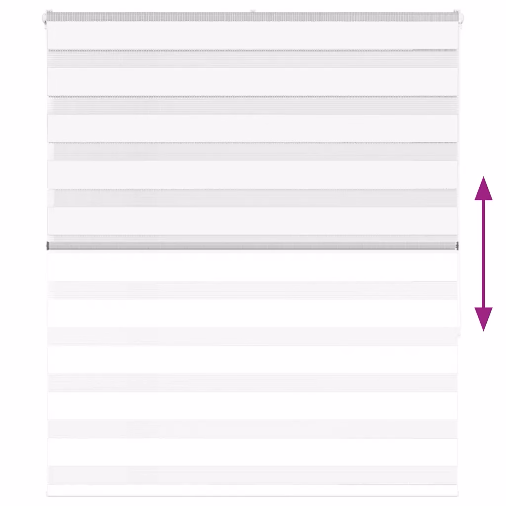 See valge päev-öö ruloo võimaldab mugavalt reguleerida ruumi valgust ja privaatsust, sobides hästi elutuppa, magamistuppa või kontorisse. Kahekihiline triibuline kangas vahelduvate läbipaistvate ja läbipaistmatute ribadega võimaldab valida pooleldi läbipaistva või peaaegu pimeda ruumi, sõltuvalt ribade asendist.