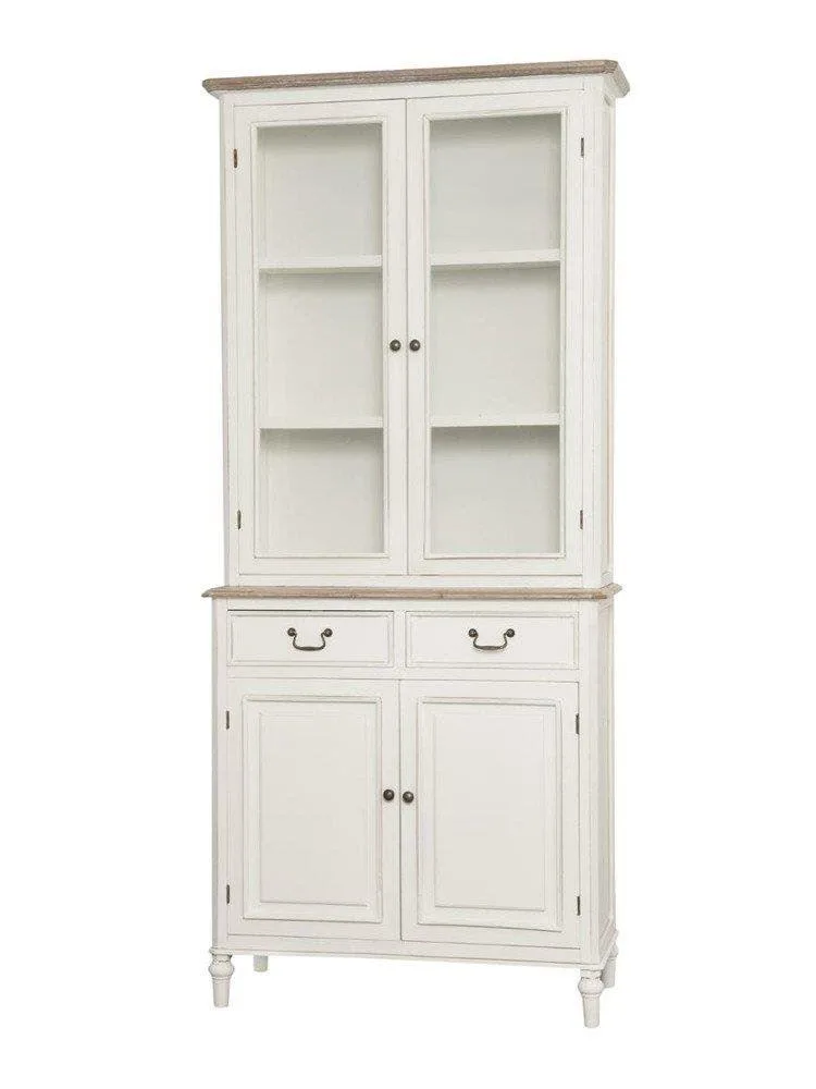 Ravenna RA01 vitriinkapp söögituppa. See elegantne Provencal-stiilis kapp lisab teie söögituppa ajatut võlu. Valge viimistlus koos tumeda pruuni pealispinna ja ülemise kaunistusega loob harmoonilise ja kutsuva atmosfääri. Metallist käepidemed ja rulljalad lisavad sellele mööbliesemele peeneid detaile, mis tõstavad esile selle ainulaadse disaini.