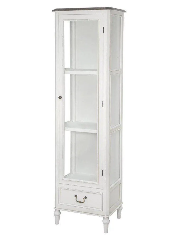 Ravenna RA05 vitriinkapp elutuppa. See elegantne vitriinkapp on inspireeritud Provence’i stiilist, tuues teie elutuppa õrna valge tooni ja tumeda pruuni ülemise äärega. Kapi metallist käepidemed ja rullitud jalad lisavad sellele ajatut võlu ja praktilisust.