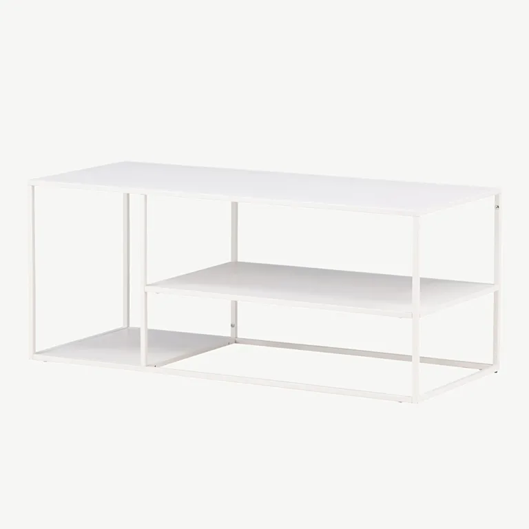 - Disain: Kolme avara riiulipinnaga valge terasest kohvilaud võimaldab korrastada ajakirjad, puldid või dekoratiivesemed, jättes ruumi avaraks ja moodsaks.