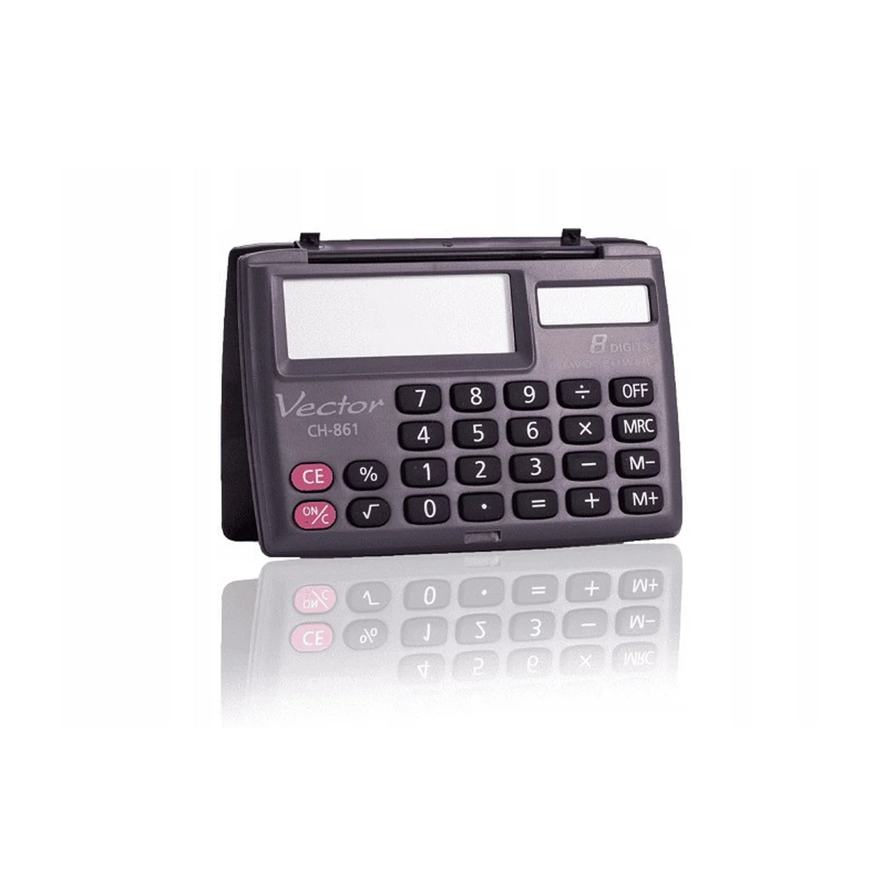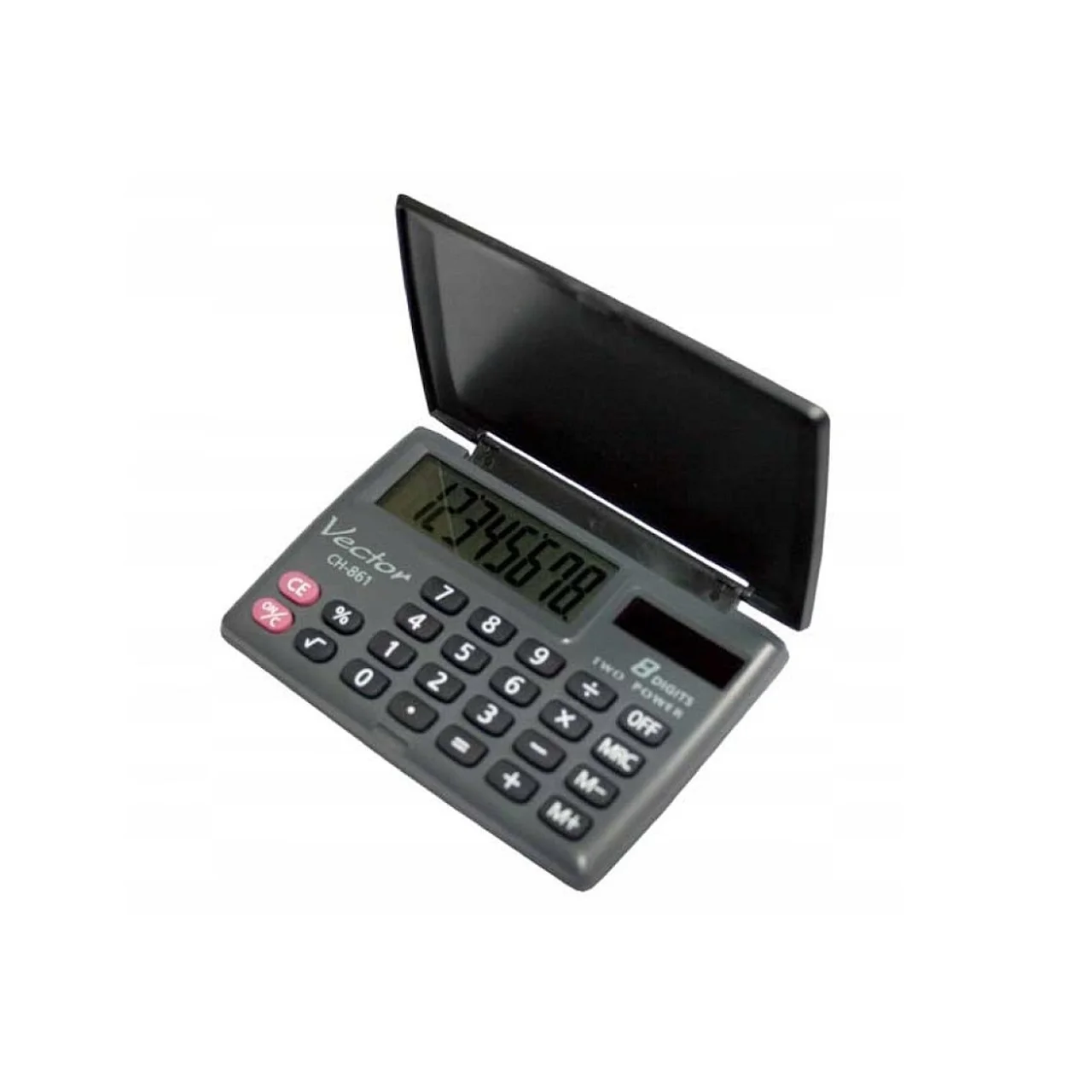 Vector KAV CH-861 8-kohaline taskukalkulaator 87×58 mm must, päikese- ja patareitoitega, kaitsekorgiga