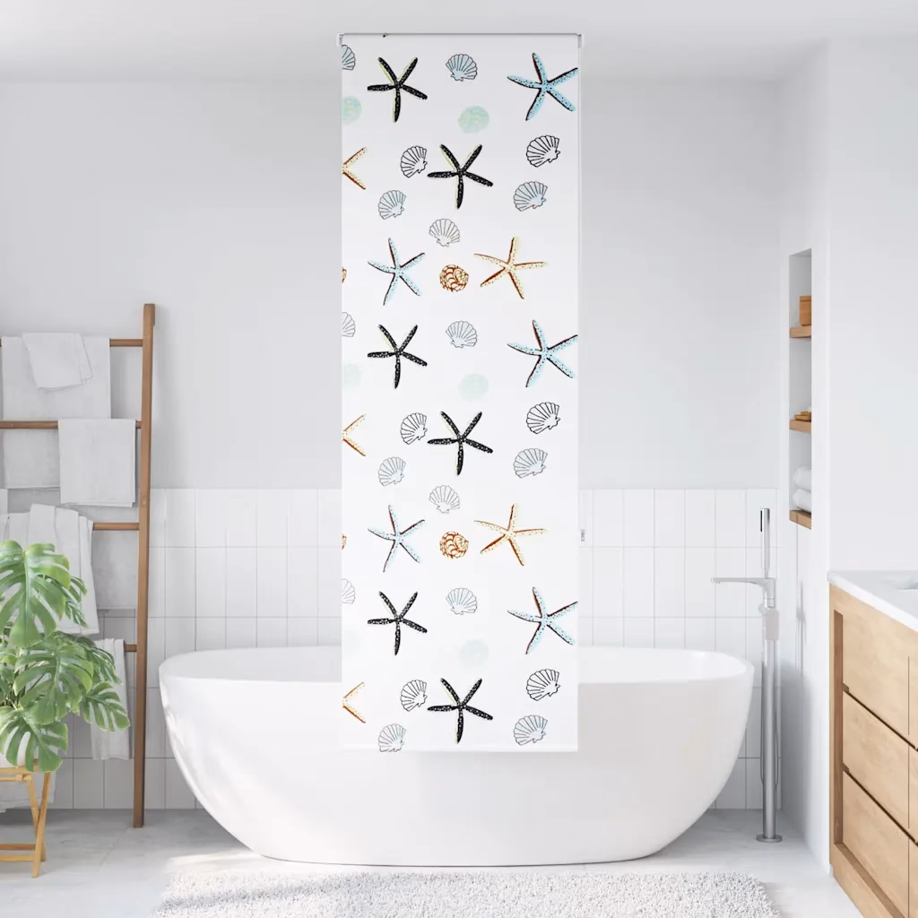 See veekindel duširuloo mõõtmetega 60 x 240 cm aitab hoida vannitoa kuiva ja korrastatuna, pakkudes samal ajal vajalikku privaatsust. PEVA-materjalist</strong mereteemalise mustriga kangas kaitseb ümbritsevaid pindu veepritsmete eest ning kerge ülesrullitav mehhanism hoiab ruloo kompaktselt koos, kui seda ei kasutata.