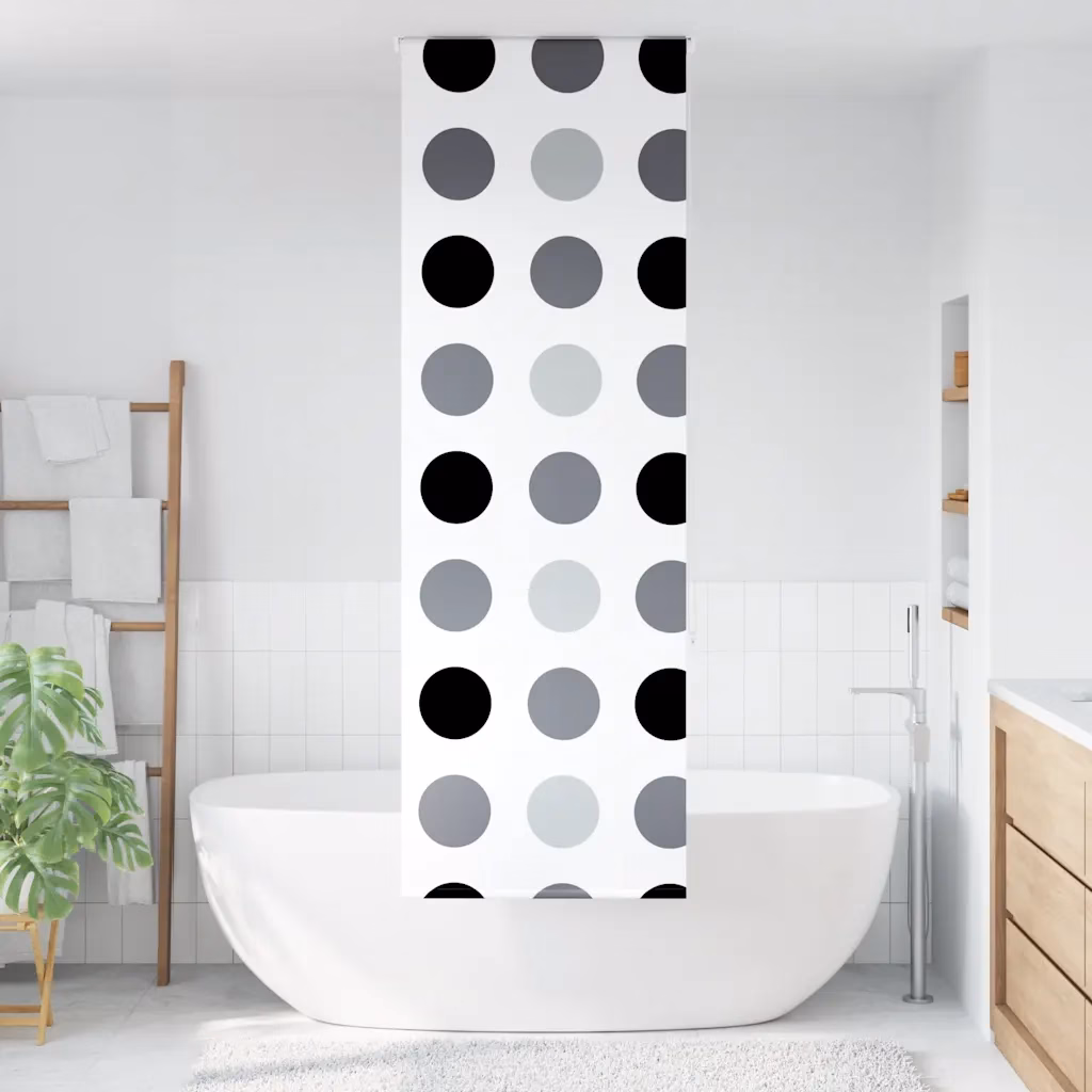 See rõngasmustriga veekindel PEVA duširuloo ühendab privaatsuse, lihtsa hoolduse ja ruumisäästliku disaini. Kui soovite vannituppa praktilist lahendust, mis kaitseb pritsmete eest ja näeb samal ajal stiilne välja, on see ruloo sobiv valik.