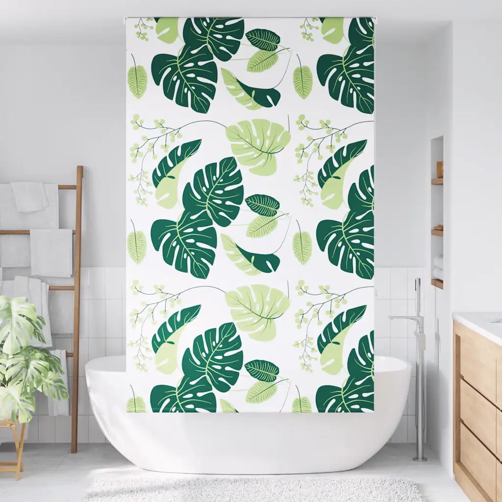 See veekindel duširuloo aitab hoida vannitoa põranda kuivana ja tagab duši all käies vajaliku privaatsuse. Roheliste lehtede mustriga PEVA-kangas toob ruumi värske, loodusest inspireeritud ilme, samal ajal kui ülesrullitav mehhanism hoiab ruloo kompaktselt koos, kui seda ei kasutata.