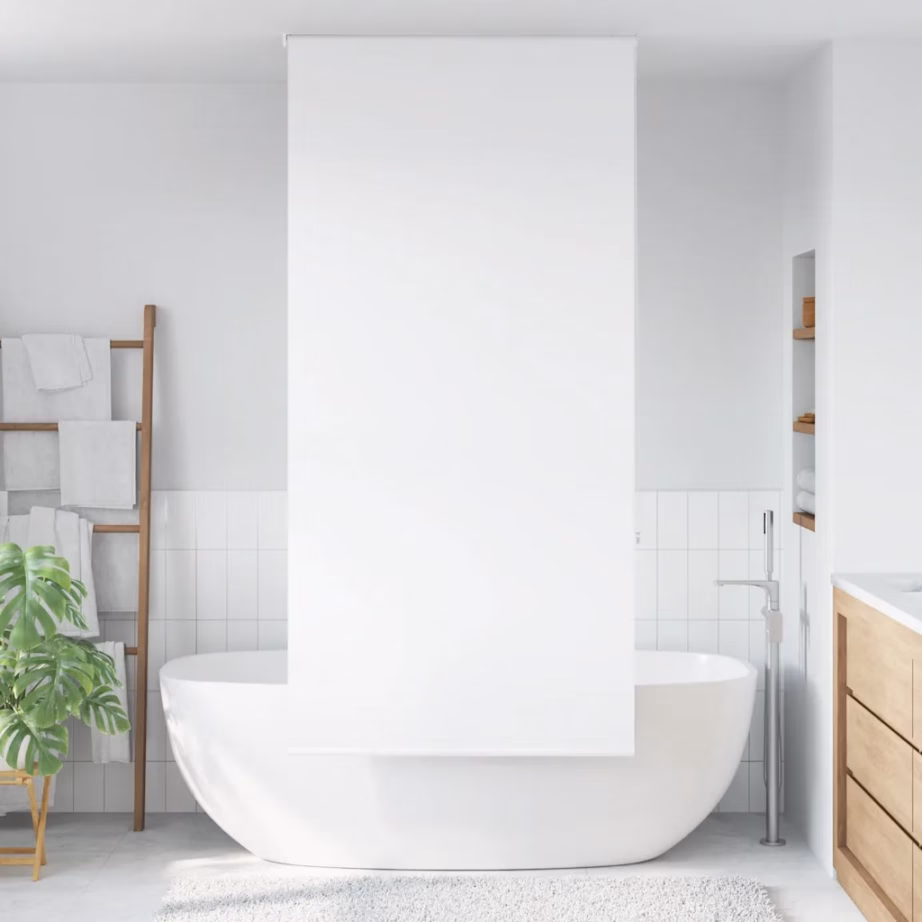 - Hea privaatsus – ühtlane valge ruloo loob duši all käies varjatud ja rahuliku keskkonna.
