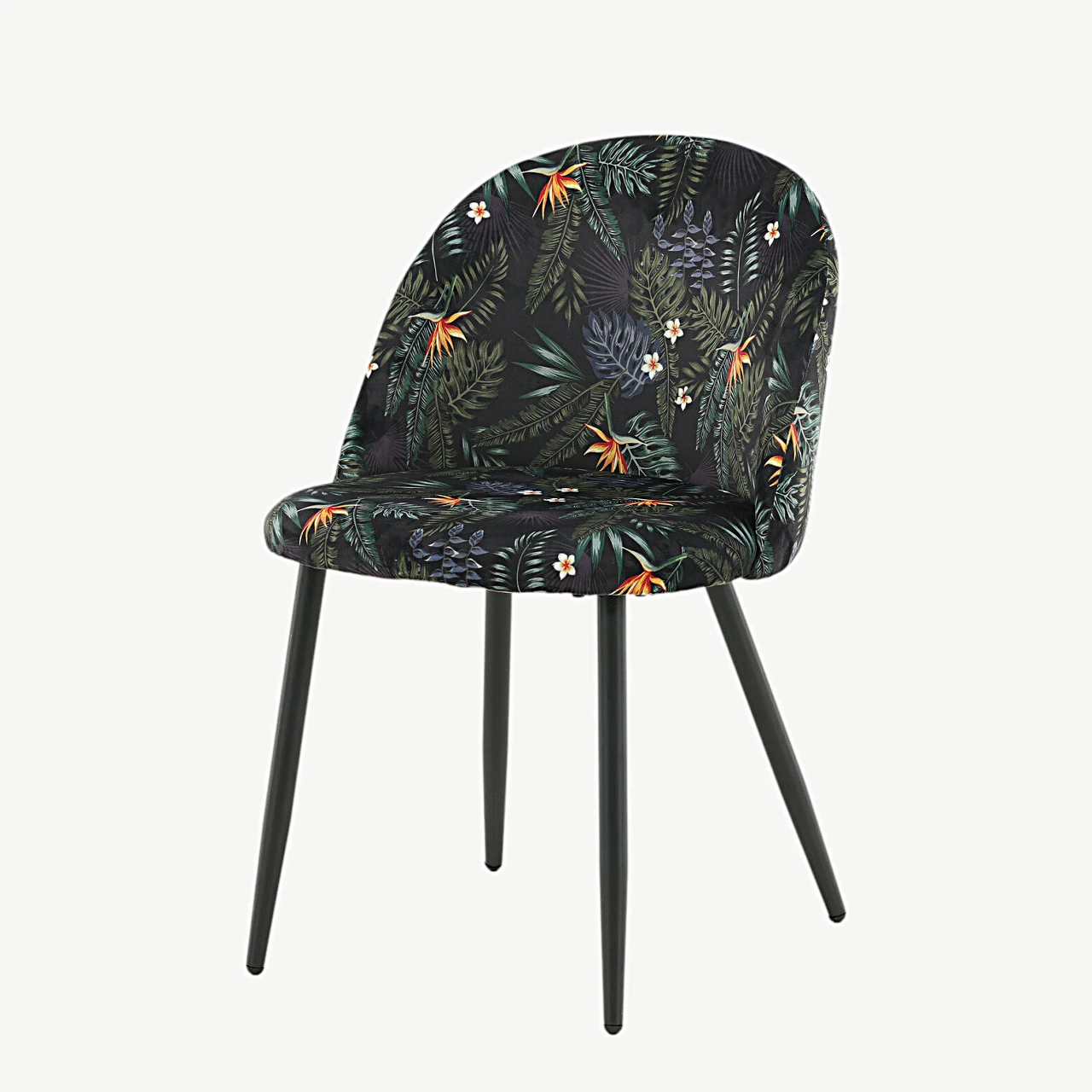Loo oma söögituppa pilkupüüdev ja omanäoline ilme musta lillemustriga söögitooliga Velvet-sarjast! See modernse joonega tool paistab silma luksusliku sametkatte, jõulise mustrilise disaini ning vastupidavate mustade metalljalgadega. Mitmekülgne stiil võimaldab tooli hõlpsasti sobitada nii põhjamaise kui ka kaasajastatud klassikalise interjööriga, luues igas ruumis erilise atmosfääri.