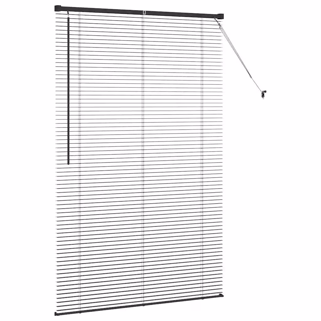 Mustast alumiiniumist Veneetsia ribakardin mõõtudega 175 x 110 cm pakub tõhusat valguse ja privaatsuse kontrolli köögis, elutoas või kontoris. Lihtne horisontaalsete lamellide süsteem võimaldab valguse hulka täpselt reguleerida ning samal ajal säilitada mugava ventilatsiooni. Tänu tagasihoidlikule disainile sobitub ribakardin erinevatesse sisekujundusstiilidesse ja katab akna diskreetselt.