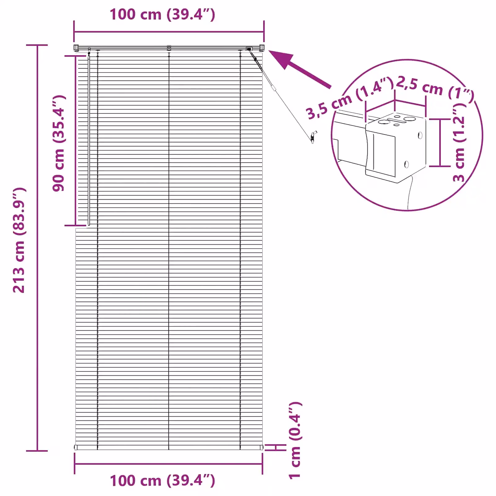 - Reguleeritav valgus ja privaatsus – lamelle saab pöördvarrega kallutada, et suunata loomulikku valgust ning kaitsta ruumi liigse piilumise eest.