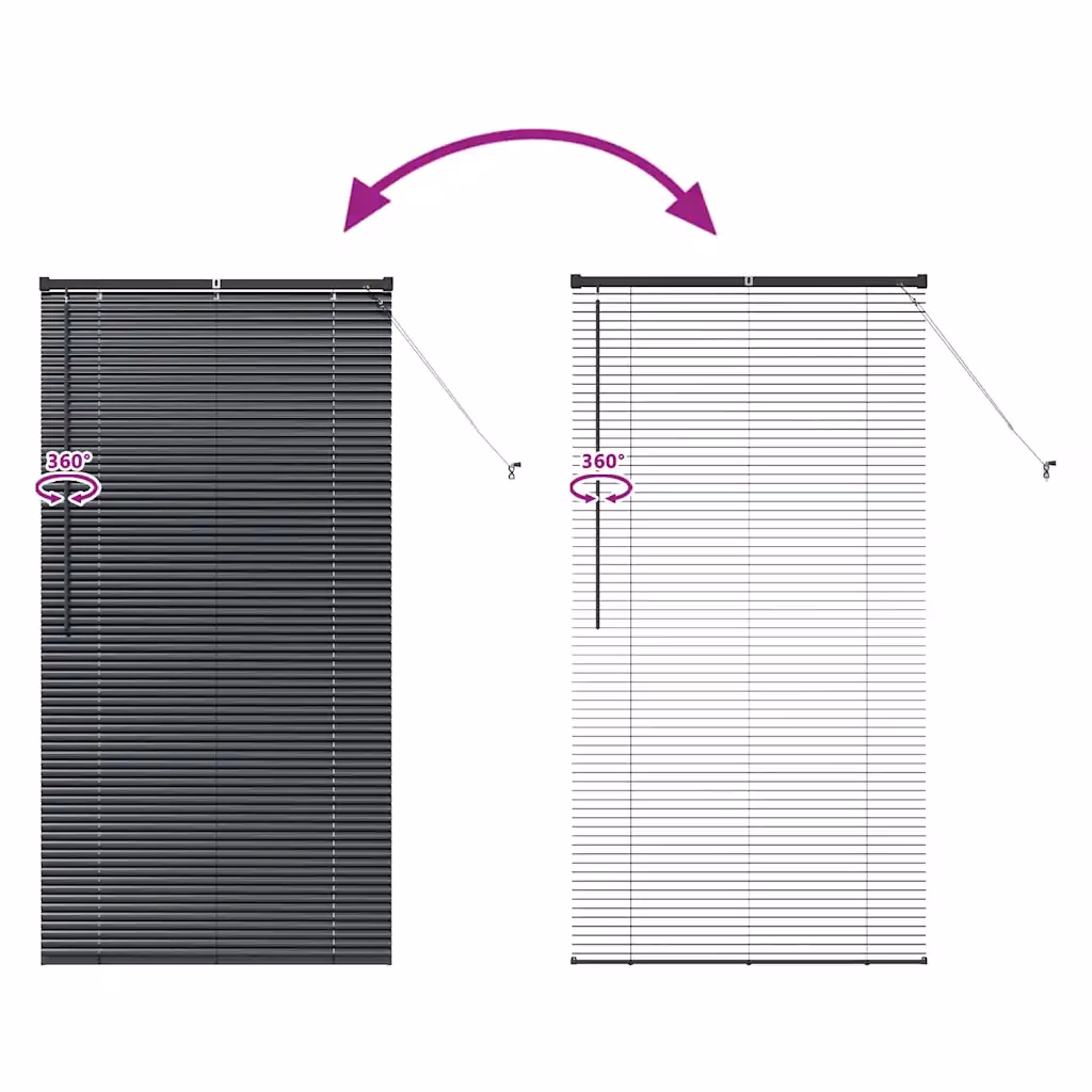 • UV-kaitse ja ventilatsioon – reguleeritud asendis aitavad lamellid vähendada otsest UV-kiirgust ning võimaldavad samal ajal õhu liikumist läbi akna.