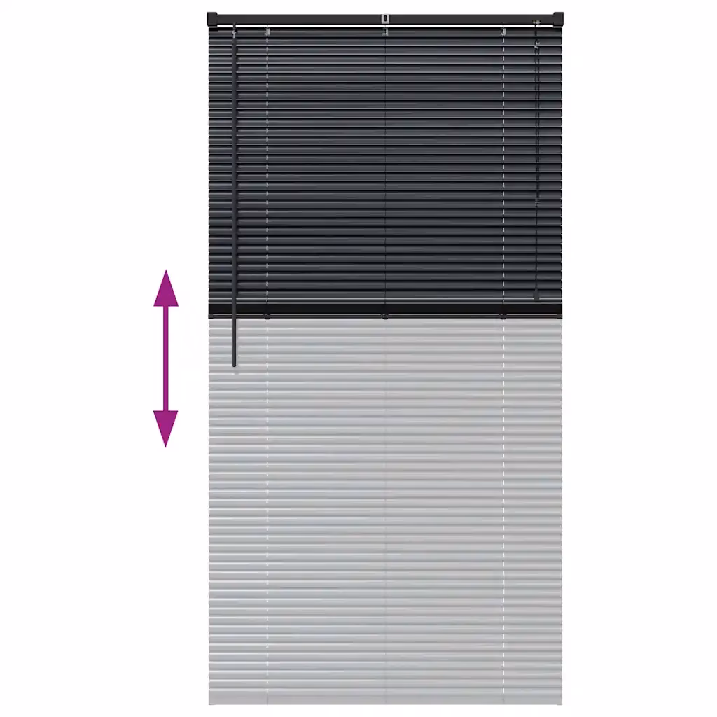 See mustast alumiiniumist Veneetsia ruloo sobib hästi kööki, elutuppa või kontorisse, pakkudes ühtaegu modernset välimust ja praktilist valgusjuhtimist. Reguleeritavate labade abil saad lihtsalt määrata, kui palju valgust ja privaatsust ruumis soovid, samal ajal kui vastupidav alumiinium tagab pika kasutusea ja kerge hoolduse.