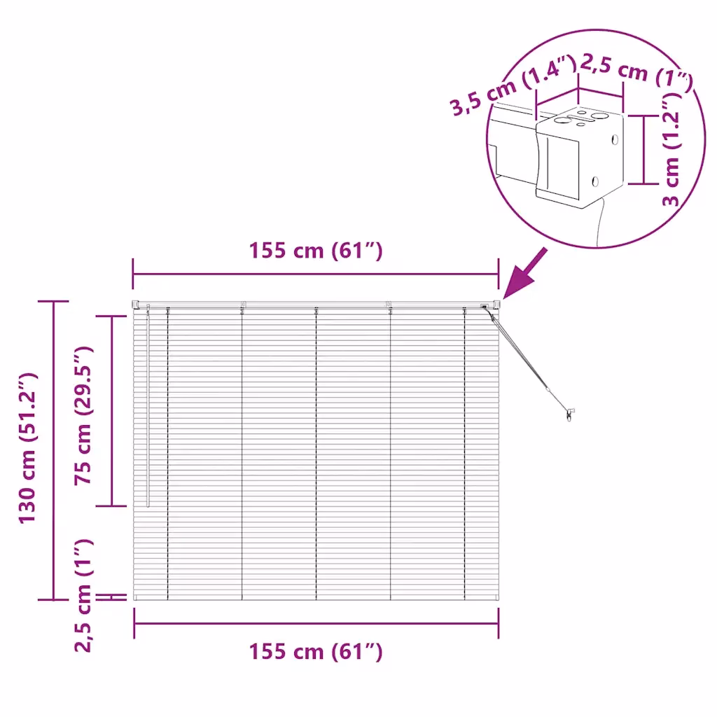 - 1 x must alumiiniumist Veneetsia ruloo 130 x 155 cm