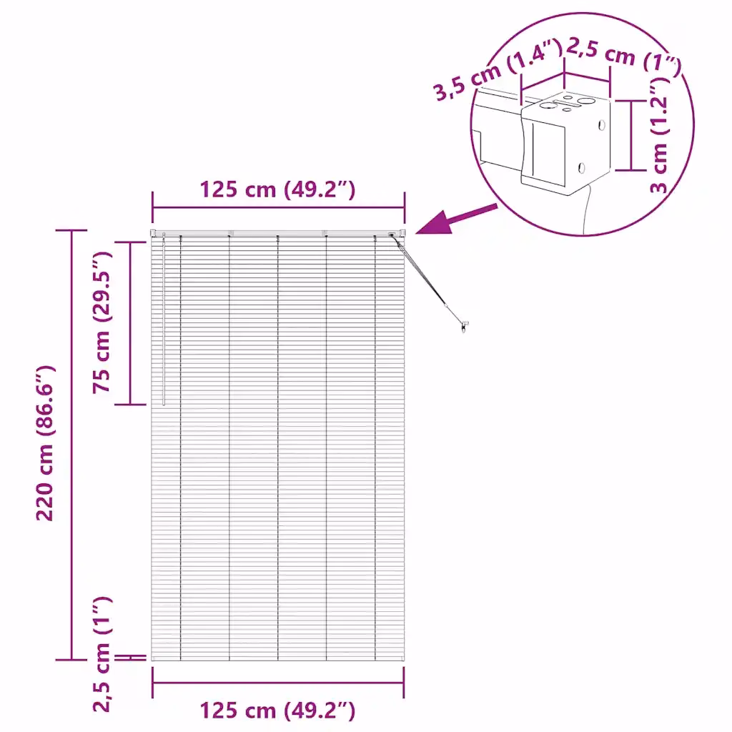 Ruloo on mõeldud paigaldamiseks aknaraami sisse, et saavutada ühtlane ja ruumi säästev lahendus. Järgi kaasasolevaid juhiseid, et märkida kinnituskohad, kinnitada kandurid ning asetada ruloo nende külge. Tõmbnööri abil saad ruloo kergesti avada ja sulgeda, samuti muuta lamellide nurka, et ruumi valgus ja ventilatsioon oleksid täpselt sinu vajadustele vastavad.