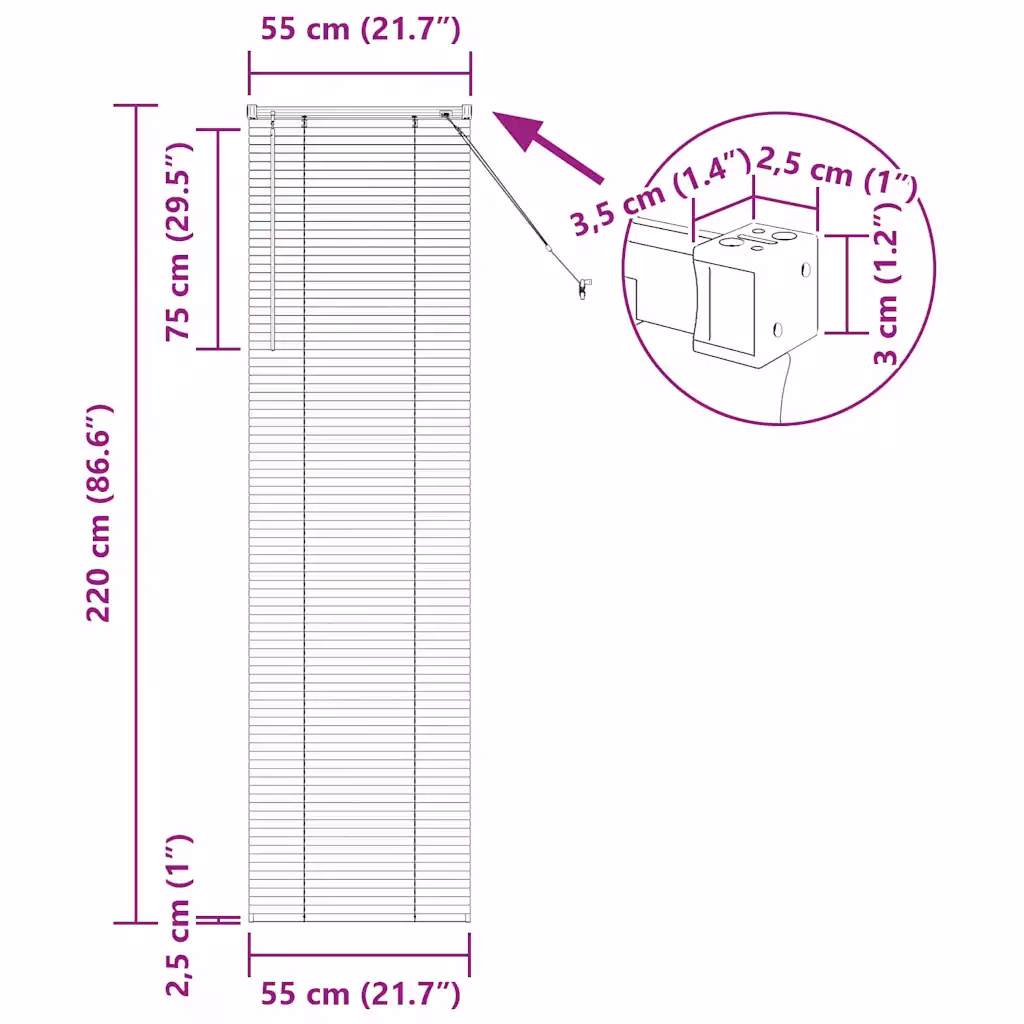 - 1 must Veneetsia ruloo mõõtudega 220 x 55 cm
