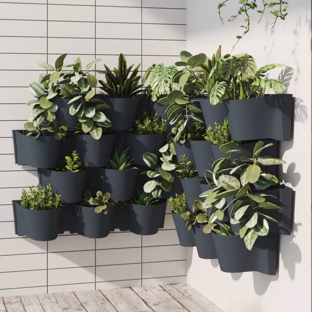 See vertikaalne aia taimekastide komplekt aitab kujundada efektse rohelise seina ka seal, kus põrandapinda on vähe. Vastupidavast UV- ja ilmastikukindlast polüpropüleenist valmistatud potid taluvad välitingimusi ning läbimõeldud niisutusdisain hoiab taimede kasvukeskkonna ühtlaselt niiskena.