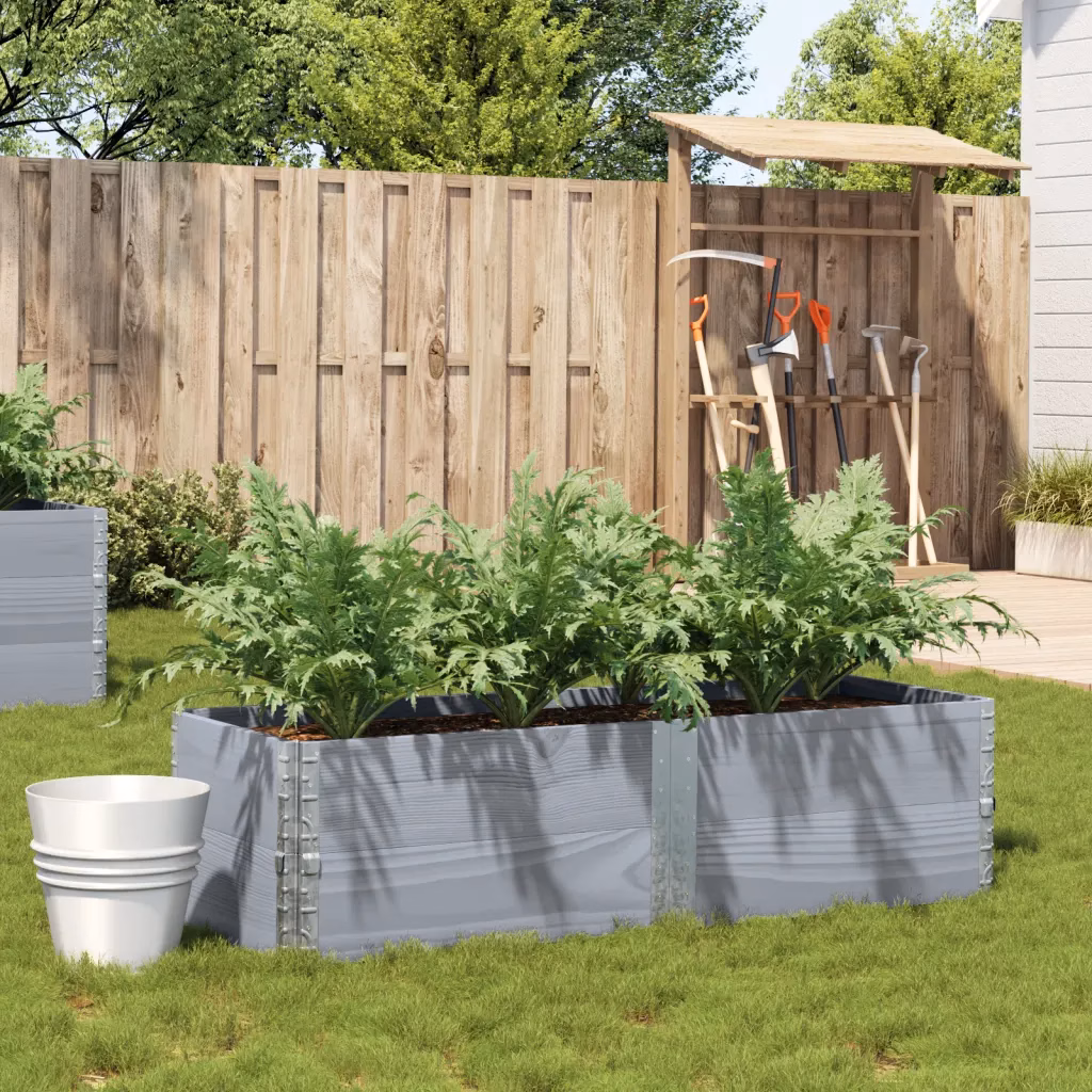 See virnastatav puidust taimekast loob praktilise kasvupinna lilledele, ürtidele ja köögiviljadele aias, rõdul või terrassil. Hall viimistlus ja männipuidust raam tsingitud nurkadega ühendavad vastupidavuse ja tagasihoidliku välimuse, mis sobib erinevatesse väliruumidesse.