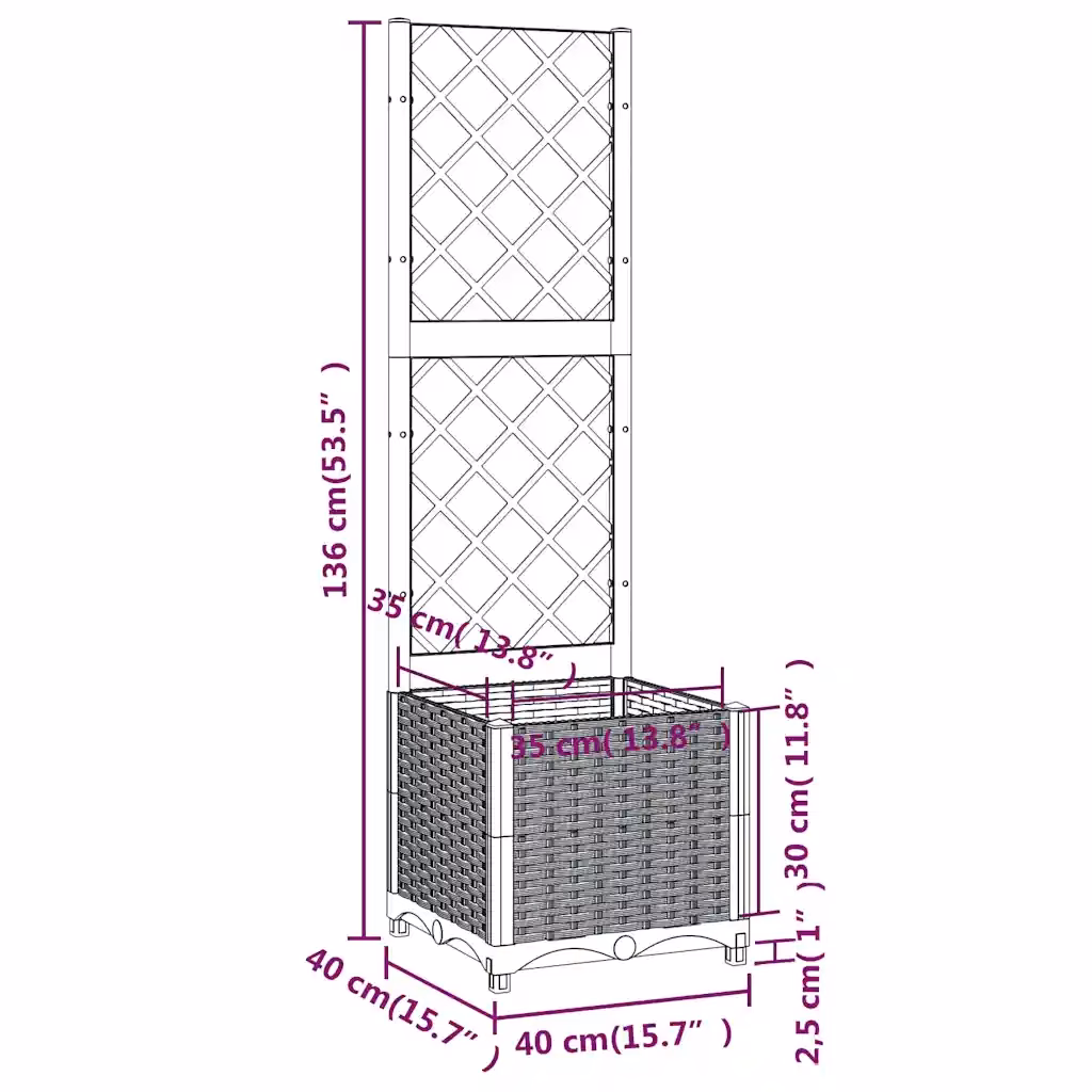 Kui soovite ruumisäästlikult kombineerida lillede ja ronitaimede kasvatamist, pakub see võrega istutuskast praktilist ja esteetilist lahendust. Tugev PP-konstruktsioon, integreeritud võre ja kompaktsed mõõtmed teevad sellest sobiva valiku nii väikesele rõdule kui ka suuremale aianurgale.