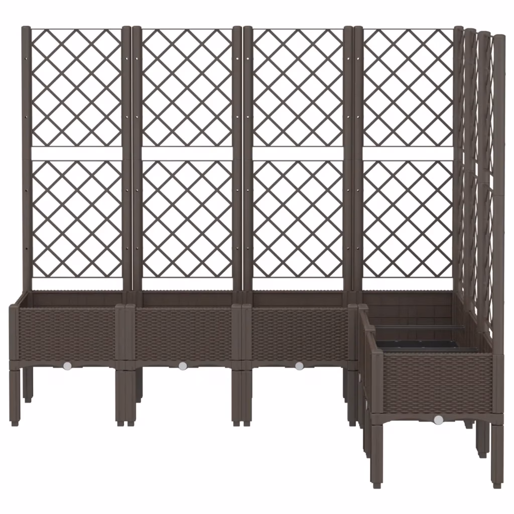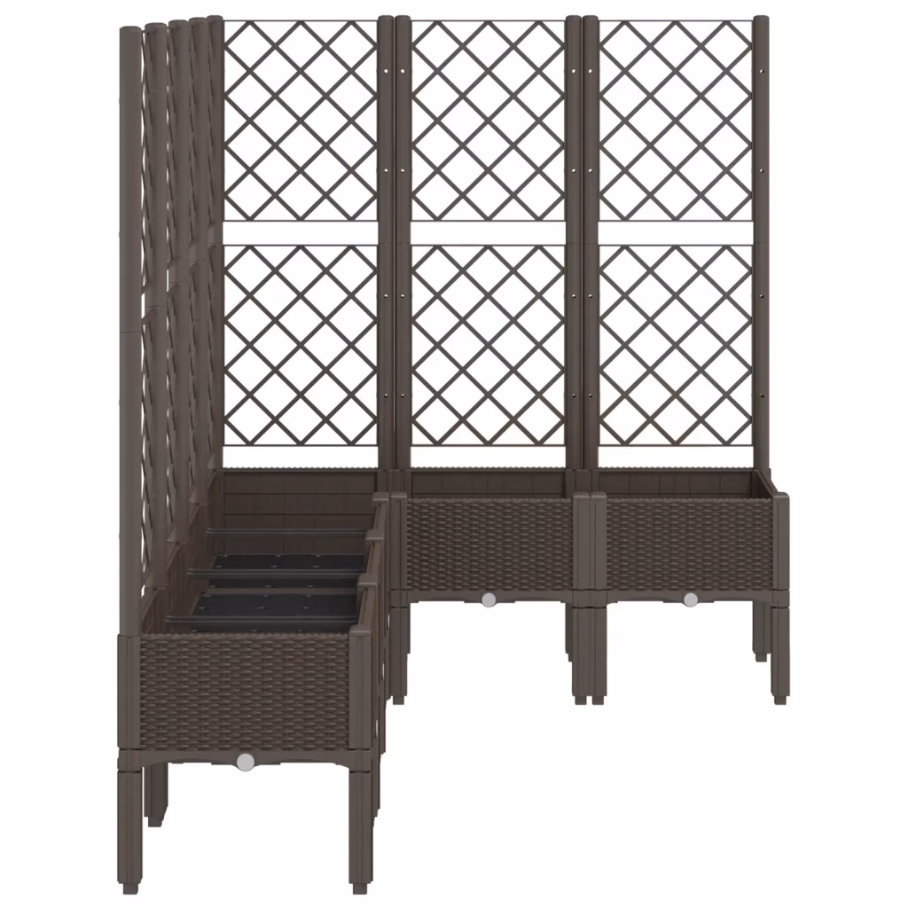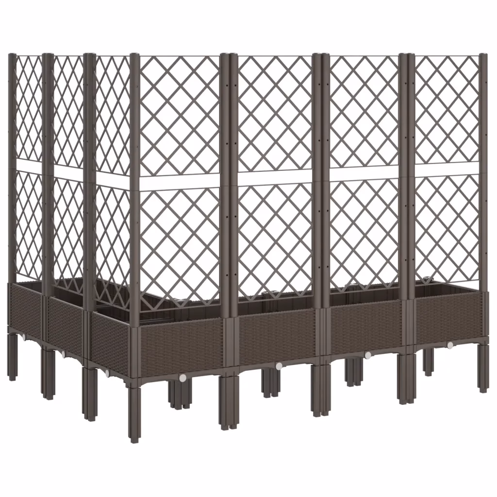 See pruun võrega taimekast ühendab dekoratiivse välimuse ja praktilised omadused, pakkudes rohkelt istutusruumi ja kindlat tuge ronitaimedele. Kõrgendatud konstruktsioon kaitseb taimi umbrohu ja kahjurite eest, samas kui vastupidav polüpropüleenist materjal tagab pikaajalise kasutuse nii aias kui ka terrassil.
