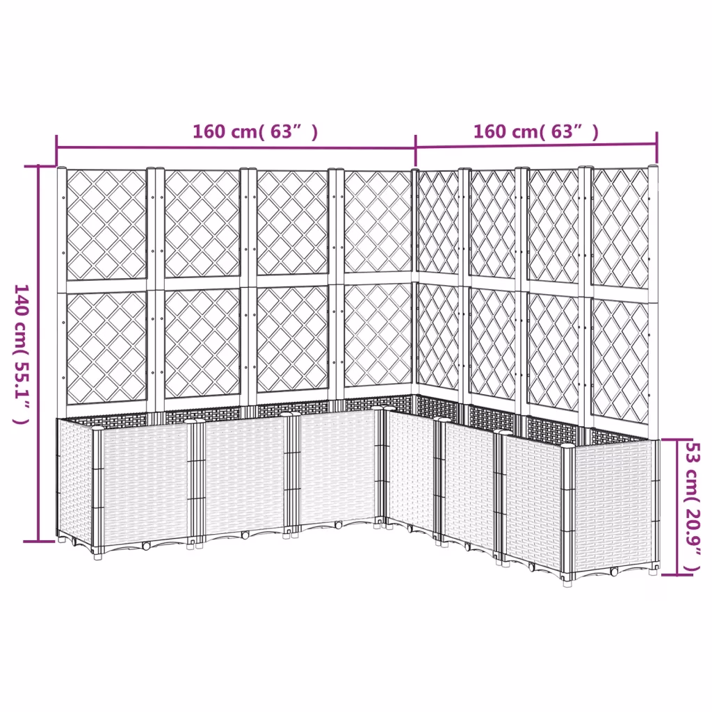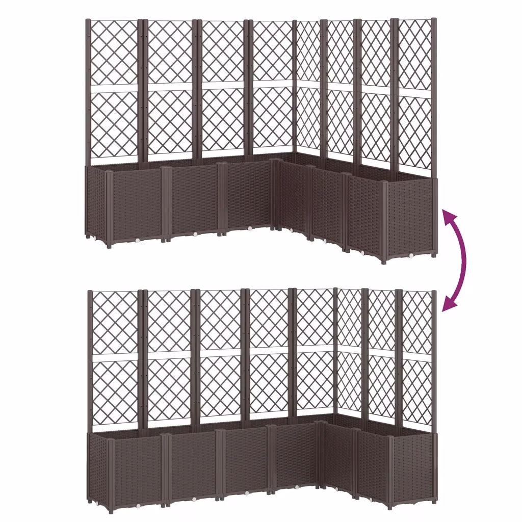 See pruun võrega modulaarne taimekastide komplekt on loodud ronitaimede, köögiviljade ja lillede kasvatamiseks aias, rõdul või terrassil. Suur kogumaht, integreeritud võre ning rotangimustriga viimistlus aitavad luua korrastatud ja esteetilise istutusala välistingimustes.