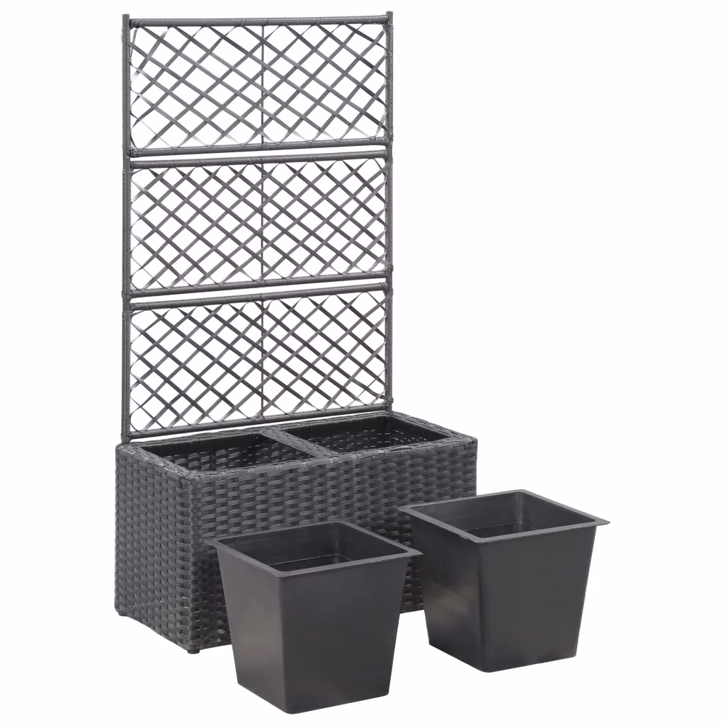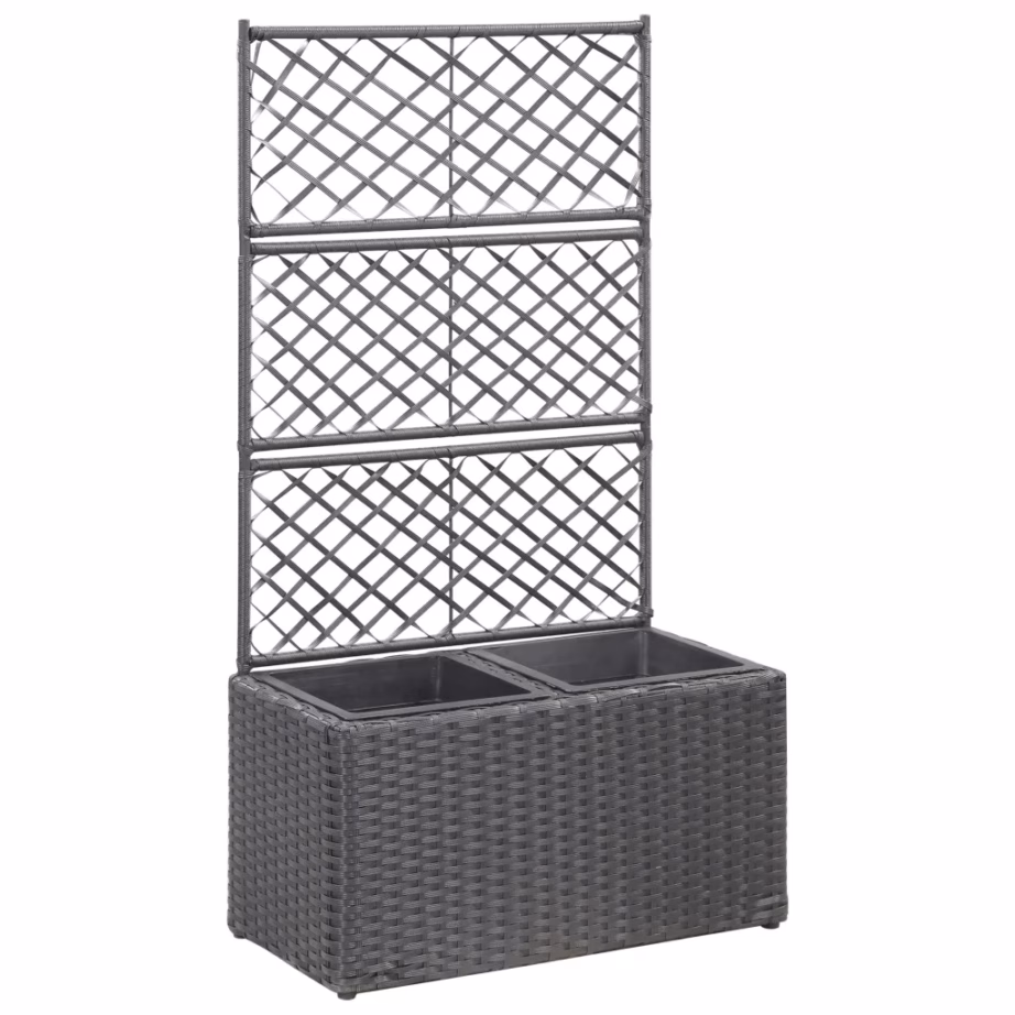 See võrega taimekast aitab luua kompaktsel pinnal lopsaka roheluse nii rõdul, terrassil kui ka aias. Kaks eemaldatavat potti pakuvad ruumi erinevatele taimedele, samas kui võre toetab ronitaimi ja loob dekoratiivse taustapinna istumisnurgale või piirde seinale.