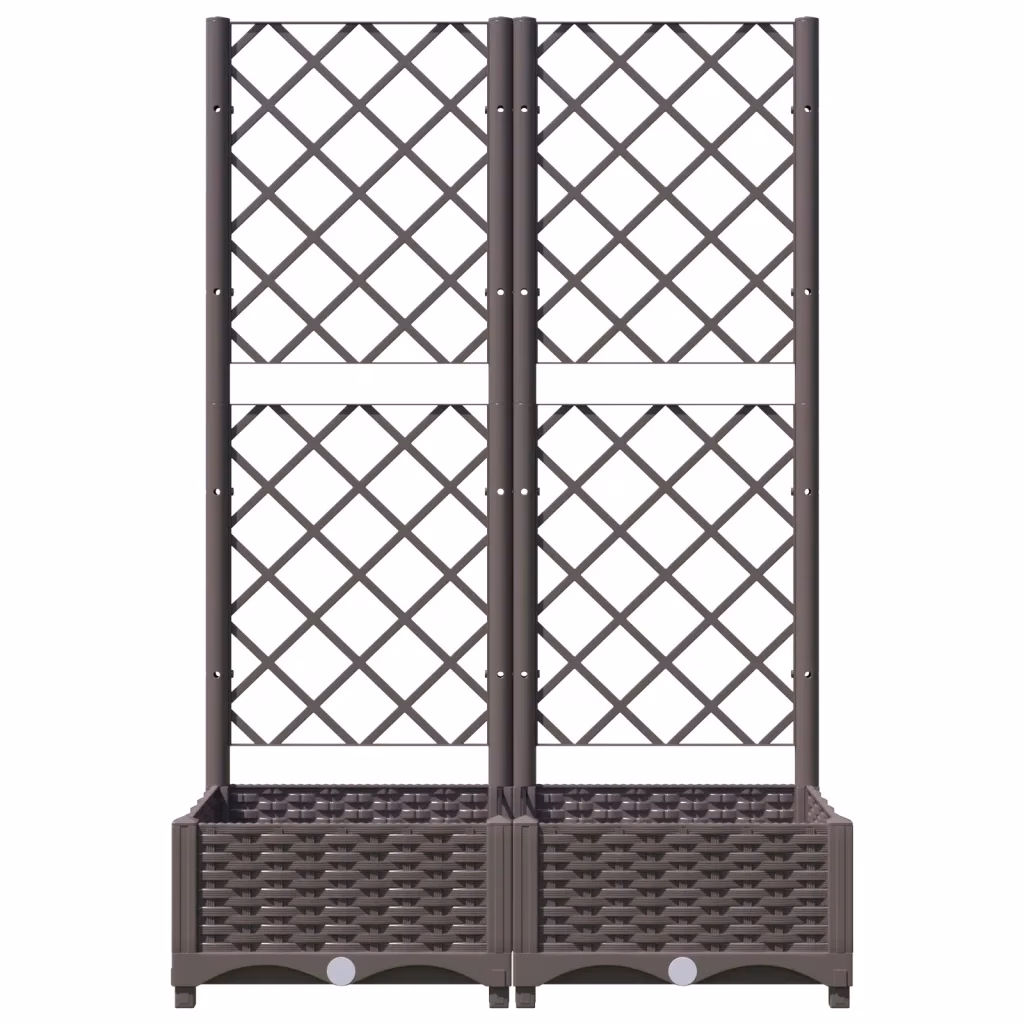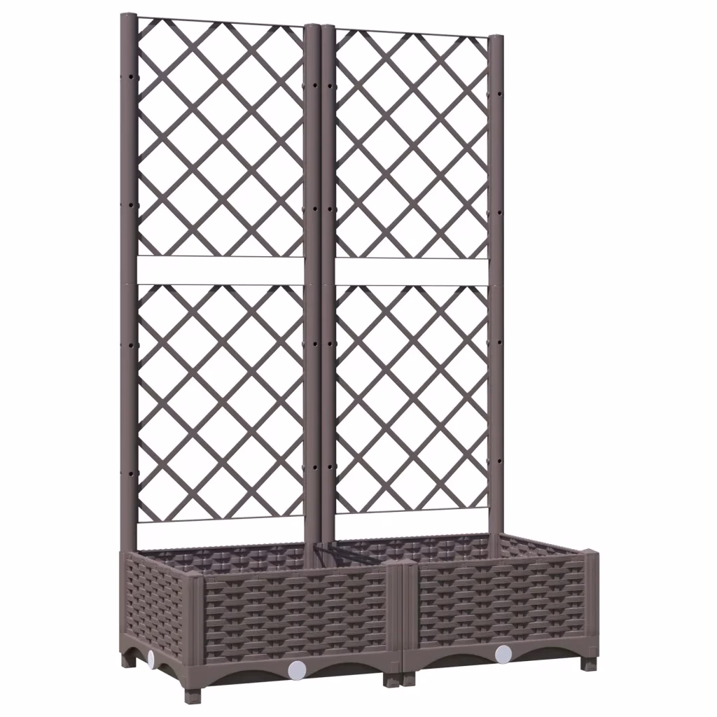 See pruun võrega taimekast aitab lisada rohelust ja struktuuri sissepääsu, rõdu, terrassi või aia kujundusse. Ruumikas istutuskast ja integreeritud võre ronitaimedele sobivad nii söödavate kui dekoratiivsete ronitaimede kasvatamiseks välitingimustes.