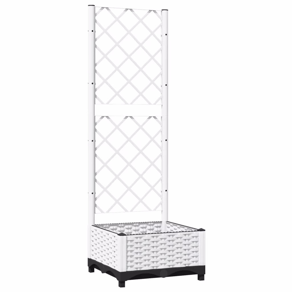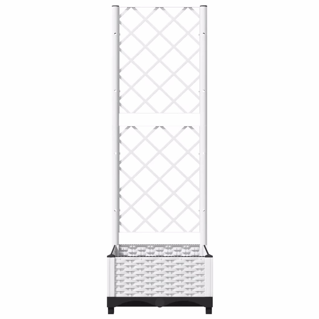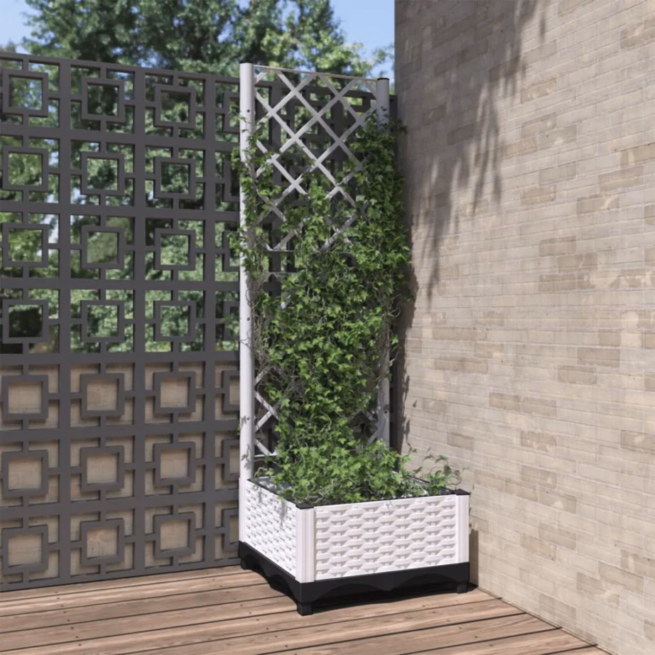 See valge võrega taimekast loob kompaktse lahenduse ronitaimede kasvatamiseks piiratud ruumis. Sügav istutuskast ja integreeritud võre aitavad luua rohelise seina või privaatsema nurgakese teie aeda, rõdule või terrassile.