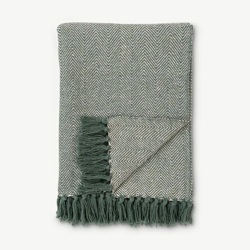 Wally puuvillane pleed, roheline ja valge