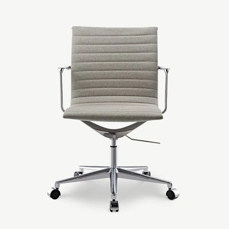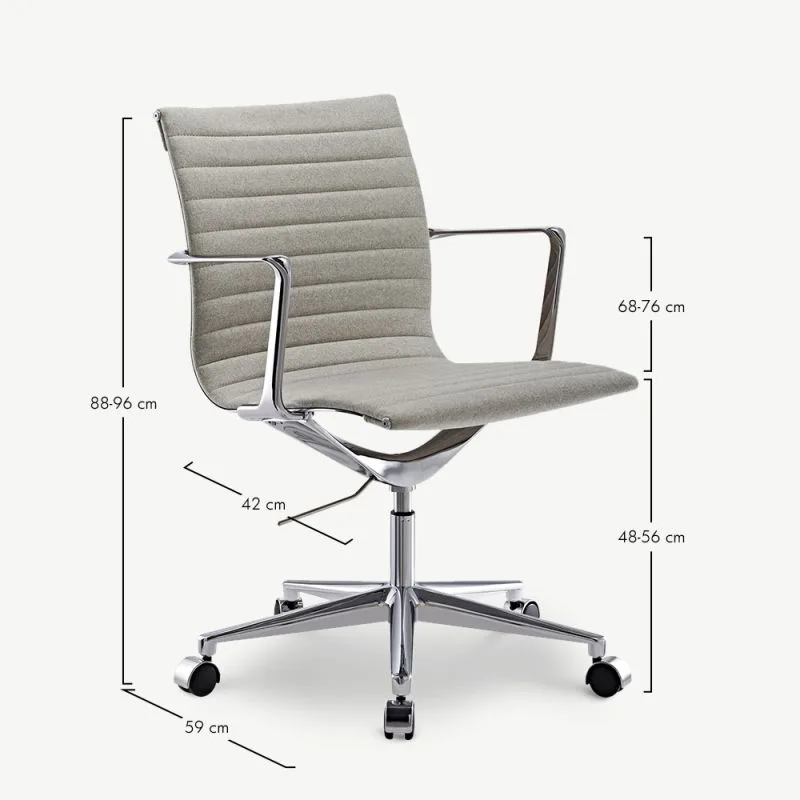Tooli tugev kroomitud metallraam tagab vastupidavuse ja pikema kasutusea. Madal seljatugi koos rihveldatud katteriidega lisab toolile stiilipuhtust ning loob professionaalse välimuse. See on suurepärane täiendus igasse kaasaegsesse kontorisse.