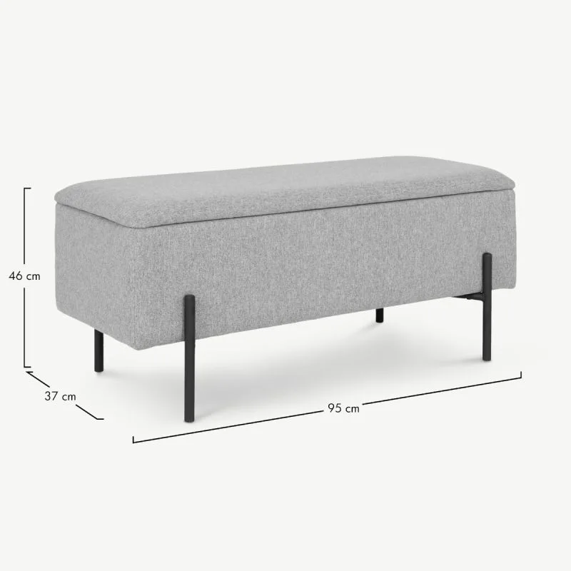 See elegantne pink on varustatud avara panipaigaga, mis avaneb kergesti üles tõstetava kaanega. Ideaalse lahendusena aitab see korrastada igapäevaseid esemeid, olgu selleks jalanõud, pleedid või ajakirjad. Tänu tugevatele metalljalgadele on pink stabiilne ja vastupidav, taludes kuni 130 kg koormust.