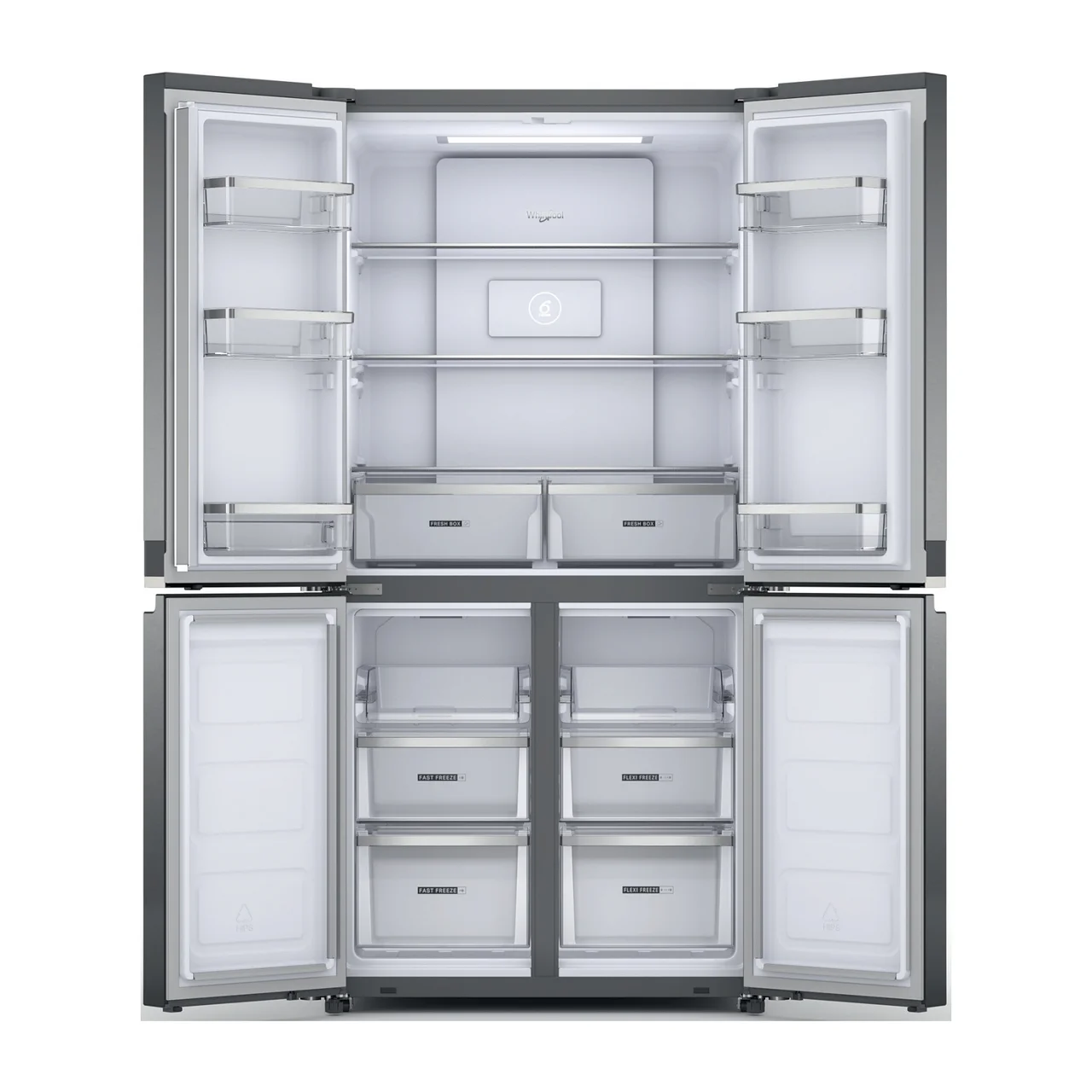Whirlpool WQ9 E2L EF on kaasaegne roostevaba külmik, mis sobib kasutajale, kes hindab suurt mahutavust, vaikset tööd ja head funktsionaalsust. See 91 cm lai ja 187,4 cm kõrge side by side külmik mahutab koguni 610 liitrit, mistõttu sobib hästi suuremale perele või neile, kes vajavad rohkelt hoiuruumi. Mudel sobib avarasse kööki ning tänu neljale uksele on kogu külmiku sisule lihtne ligipääs.