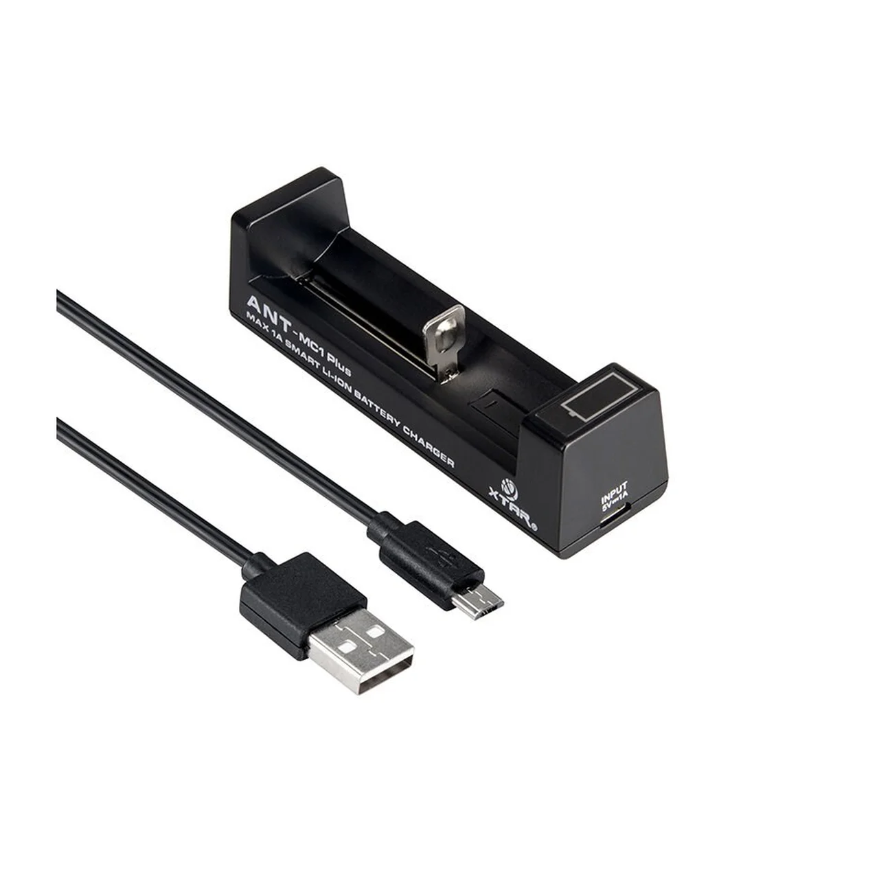XTAR ANT MC1 Plus 1x Li-Ion/NiCd/NiMH akulaadija (AA/AAA/C/D, 4.2V, 1A, USB, must)