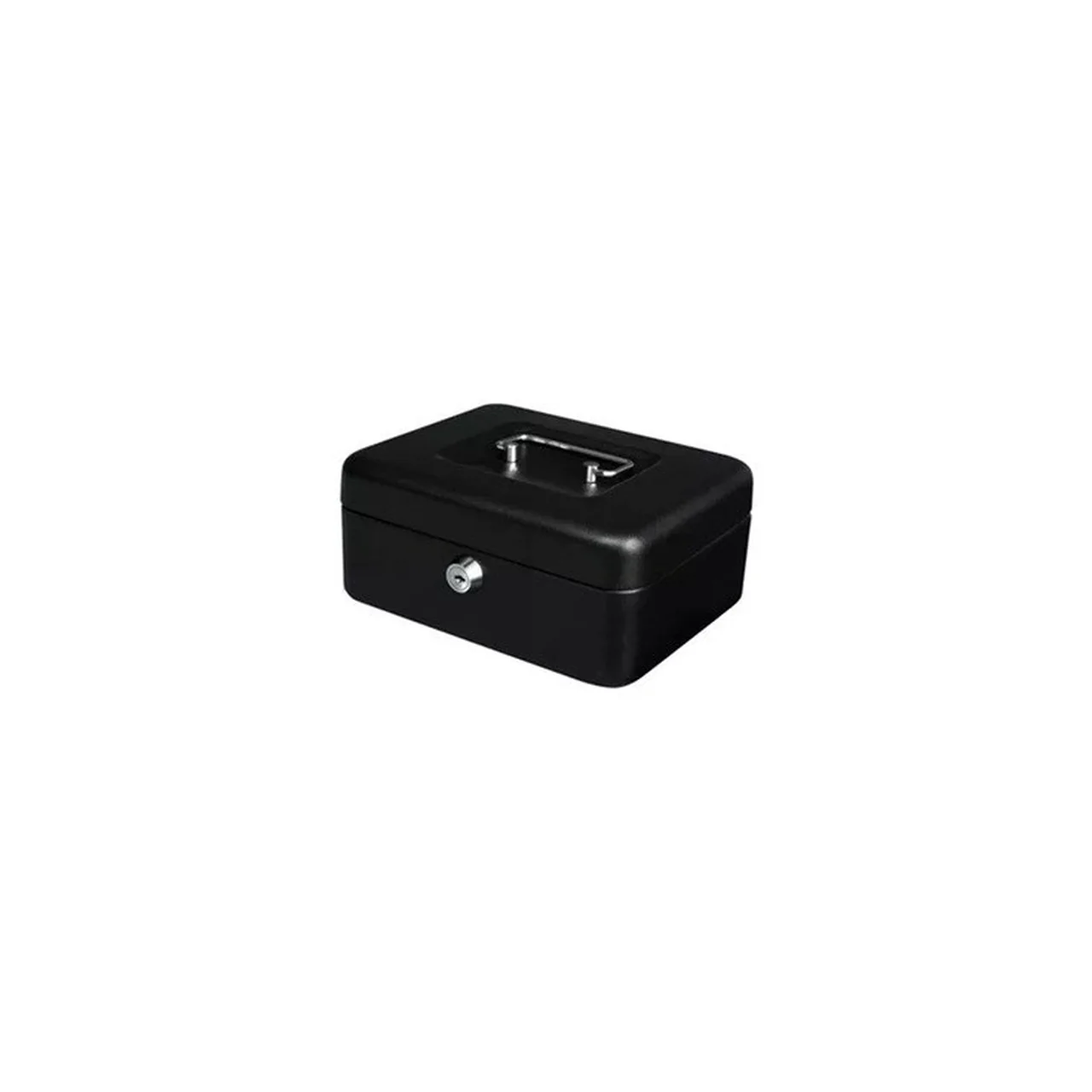 Vastupidavast metallist must võtmega sularahakassett, eemaldatava salve ja kokkupandava käepidemega, sobib sularaha ja väikeste väärtuslike esemete turvaliseks hoiustamiseks.