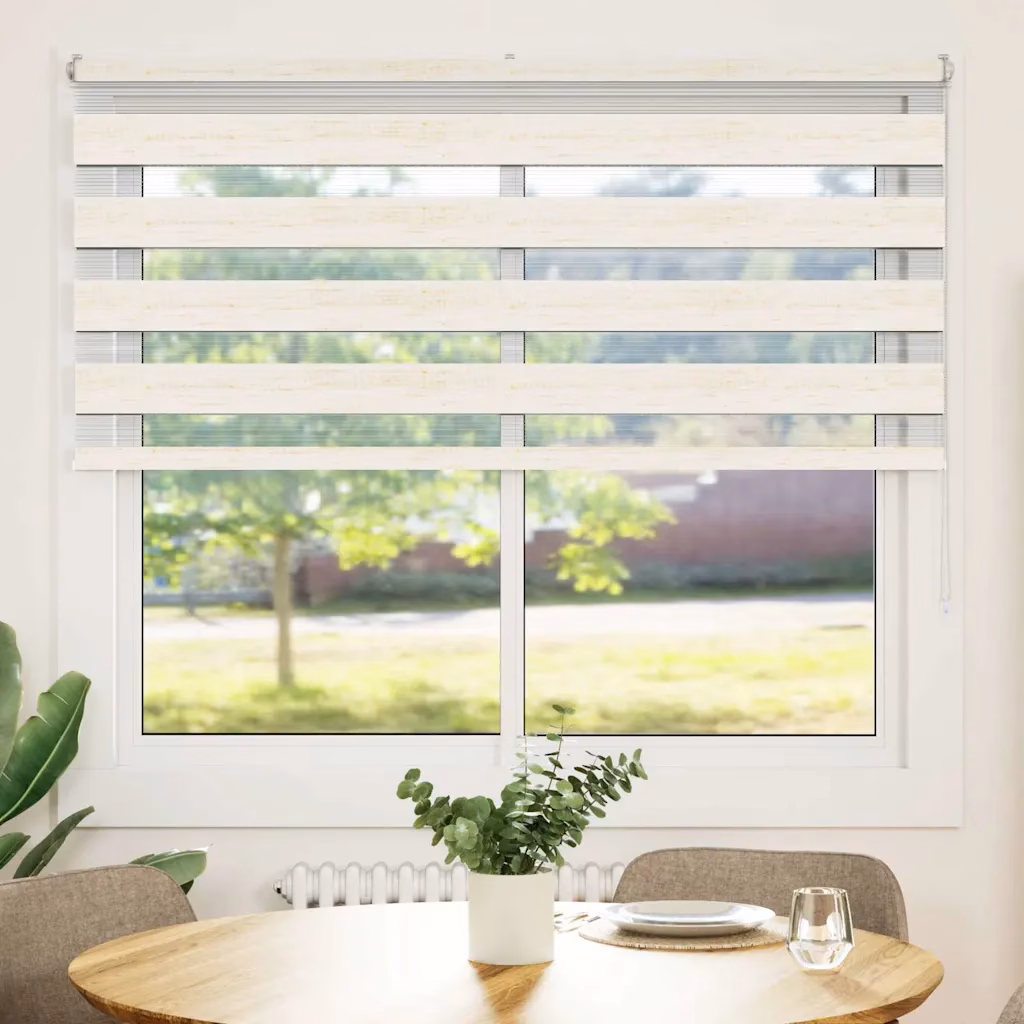 See marmorbeež zebra ruloo ühendab läbipaistvad ja läbipaistmatud ribad, et saaksite ruumi valgust ja privaatsust mugavalt reguleerida. Vastupidavast 100% polüestrist kangas ja alumiiniumist ülemine siin sobivad igapäevaseks kasutamiseks elutoas, magamistoas või kontoris.