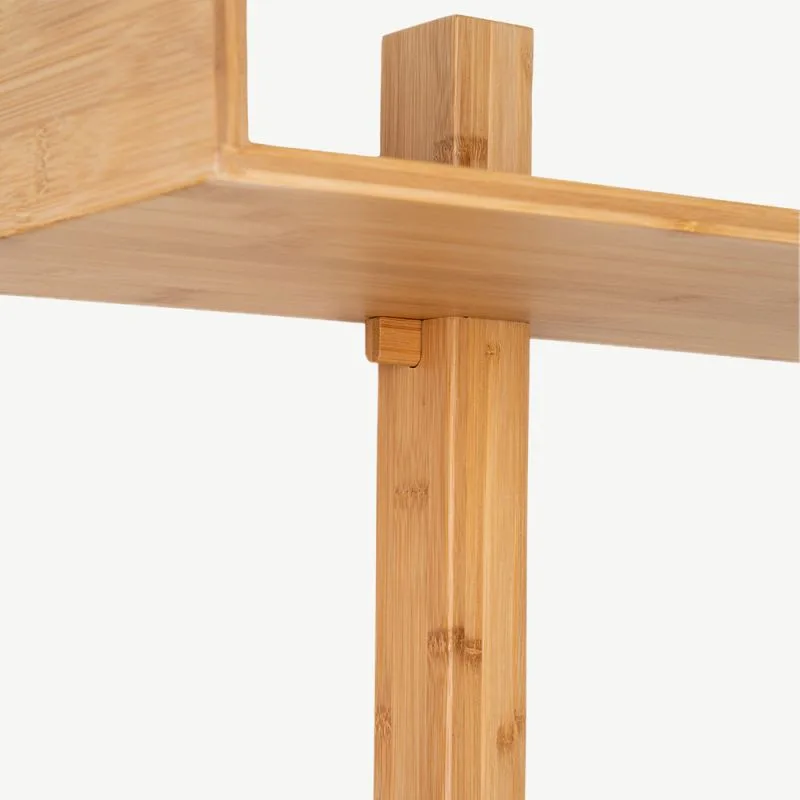 Bambus on mitte ainult tugeva struktuuriga, vaid ka keskkonnasõbralik valik. Selle looduslik toon ja sile viimistlus toovad ruumi hubasust, muutes riiuli sobivaks nii klassikalise kui ka kaasaegse sisekujunduse jaoks. Lihtne, kuid elegantne vorm tagab, et see sulandub kaunilt igasse ruumi.