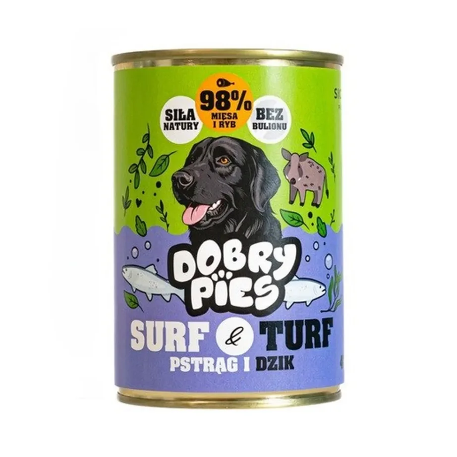 Dobry Pies Surf & Turf 400 g gluteenivaba forelli ja metssigaliha märgtoit täiskasvanud koertele Märgtoit ja konservid koertele 3,66 € Laost otsas Vaata toodet